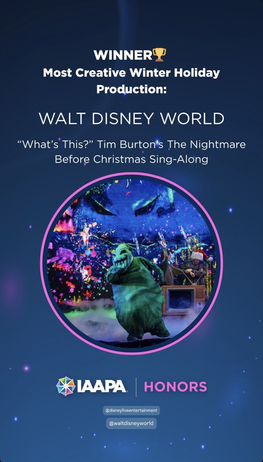- This year, Disney's sing-along received the award for “Most Creative Winter Holiday Production."