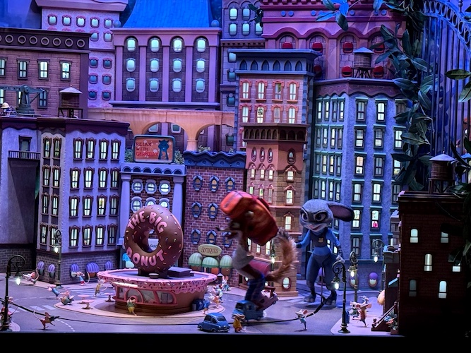 - This new display features animated figures themed to the Walt Disney Animation Studios film, Zootopia, depicting Judy Hopps chasing Duke Weaselton through Little Rodentia - as seen in the movie.