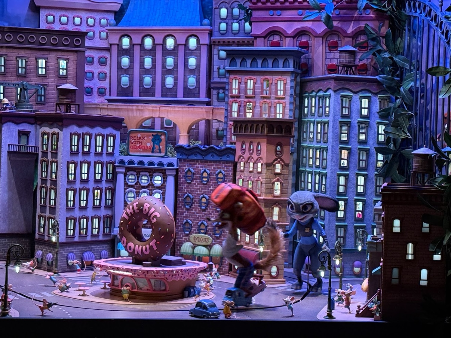- This new display features animated figures themed to the Walt Disney Animation Studios film, Zootopia, depicting Judy Hopps chasing Duke Weaselton through Little Rodentia - as seen in the movie.