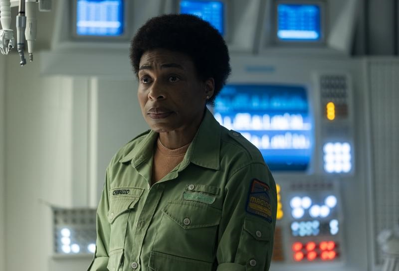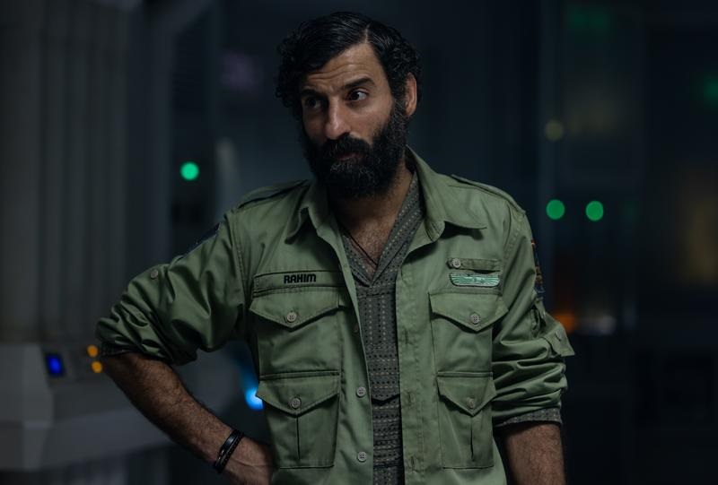 Morrow and Clem arrive in the medical bay, where Morrow gets his first sight of Bronski (Max Rinehart), who is unconscious with a facehugger sealed around his face. The doctor, Rahim (Amir Boutrous), tried to cut the creature off, only to find that the bleed acid, and Bronski’s shoulder is badly burned. Chibuzo (Karen Aldridge) argues in favor of following protocol by putting Bronski and the creature in cryogenic sleep for the remainder of the journey. Nobody knows how the fire started or how the egg crates were opened. Executive Officer Zevari (Richa Moorjani), who is now the acting captain, tasks everyone with making sure the ship is locked down, asking where Teng is.