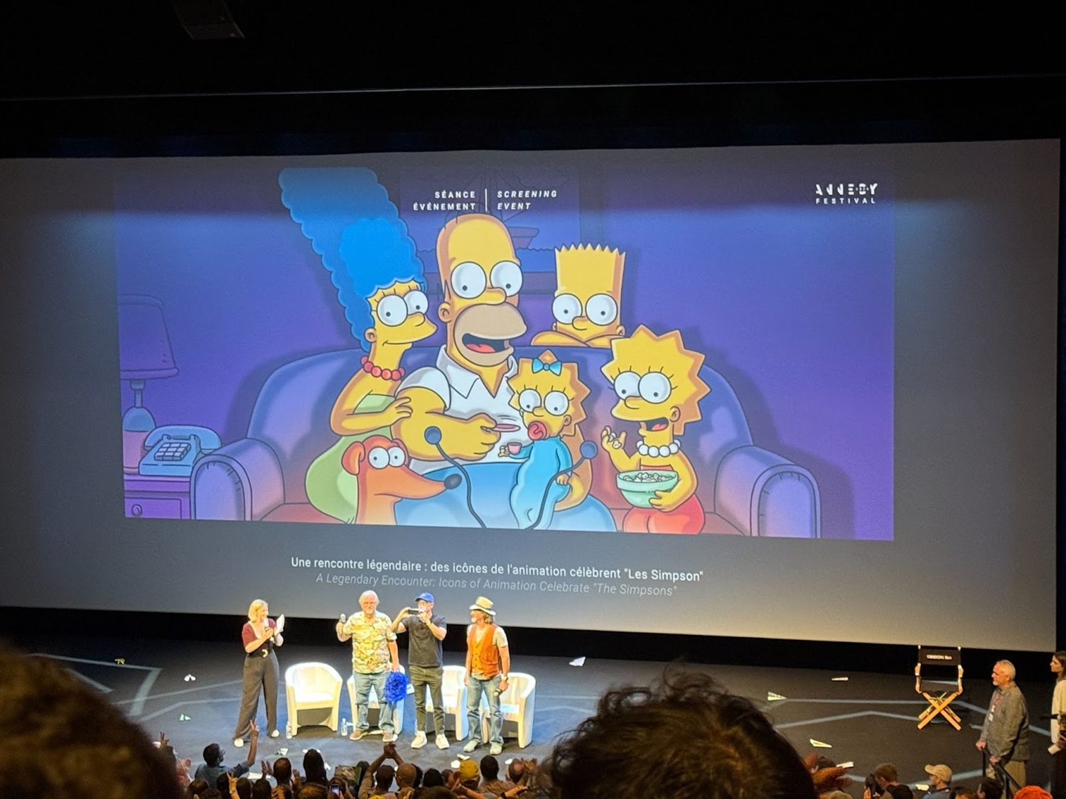 Groening and Selman were joined by longtime director David Silverman for a wide-ranging conversation about the show’s beginnings, evolution, and future. The team called it a rare treat to see a Simpsons episode with a live audience. Selman expressed sincere appreciation for the French translators, who sometimes have to creatively adapt jokes to resonate locally. “With my limited French, I could tell where they rewrote things, and I loved it," he said.