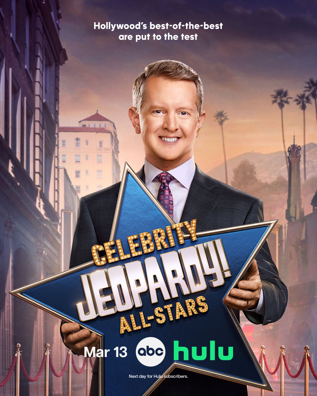 - Celebrity Jeopardy! All-Stars premieres Friday, March 13 (8:00 p.m. ET/PT) on ABC, streaming next day on Hulu.