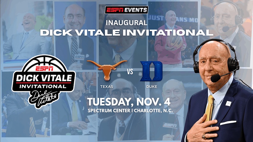- The inaugural Dick Vitale Invitational will see the Texas Longhorns against the Duke Blue Devils at the Spectrum Center in Charlotte, N.C., in the opening days of the 2025-26 season. The game is scheduled for Tuesday, November 4th, on ESPN.