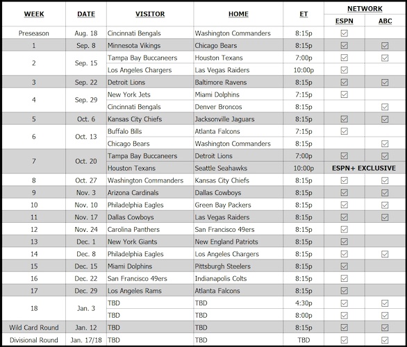 Yesterday, the NFL officially released its 2025 season schedule. Along with that, ESPN’s Monday Night Football has also revealed its slate.