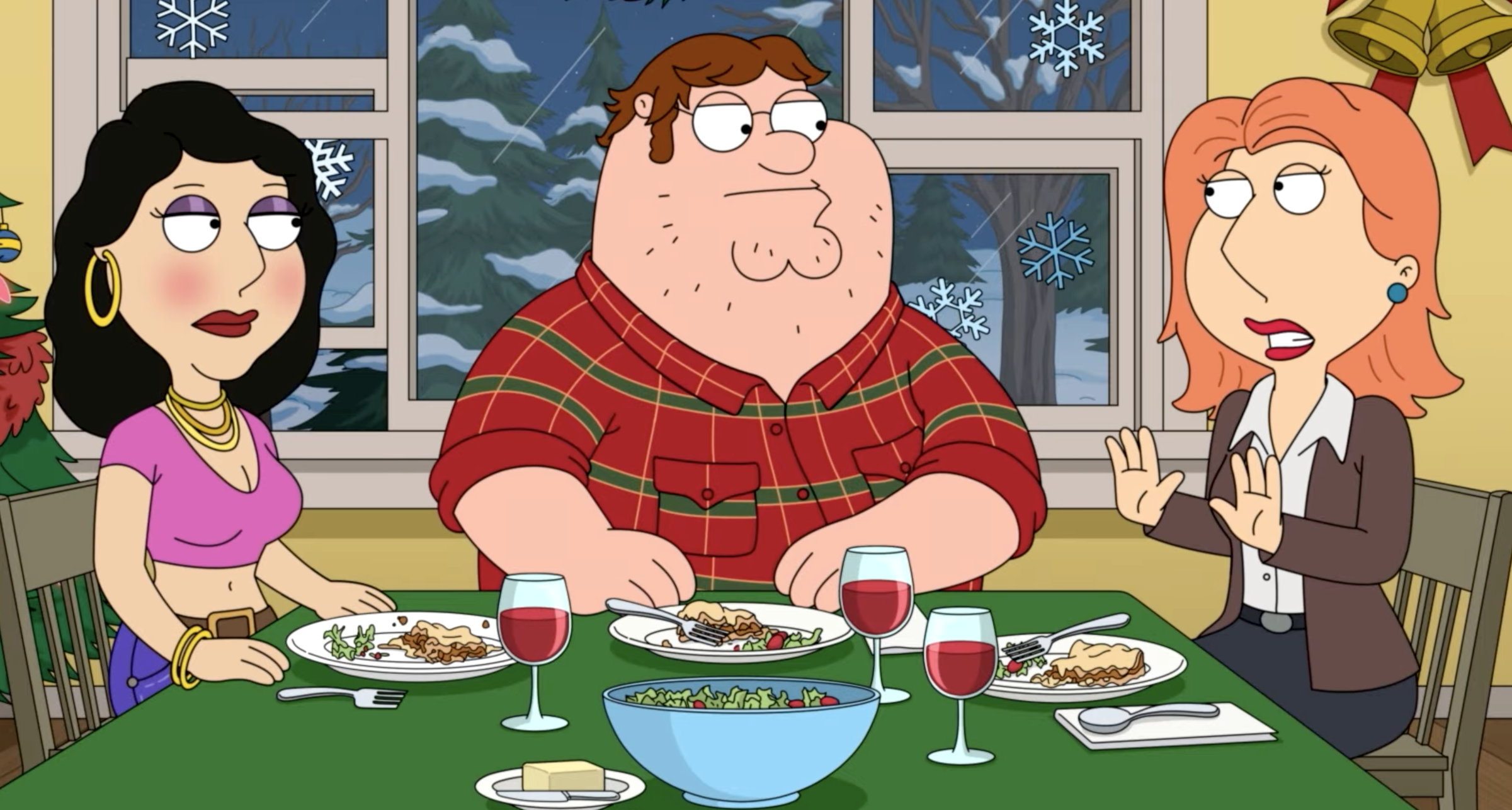 - In Family Guy’s take on generic holiday movies, Lois, who works for “Big Pie” travels to a small town in hopes of stealing Peter’s award-winning family secret pie recipe.