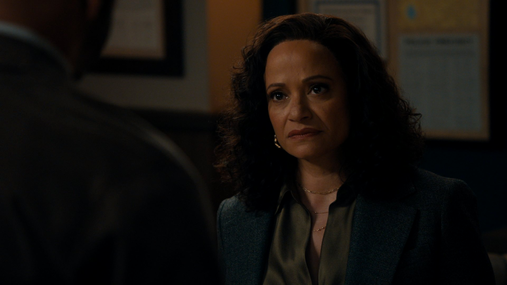 Back at the precinct that night, Karadec tells Morgan he’s glad she’s okay and congratulates her on the work. Lucia rushes in and embraces Karadec, relieved. Morgan heads for the elevator, reminding Karadec to call his mom. She stops first in the bathroom—alone—and lets herself cry. The near-death moment, and everything surrounding it, has finally caught up with her.