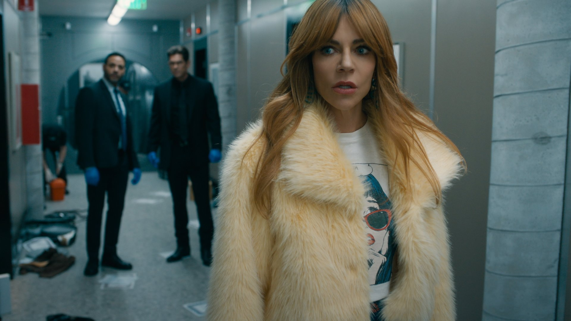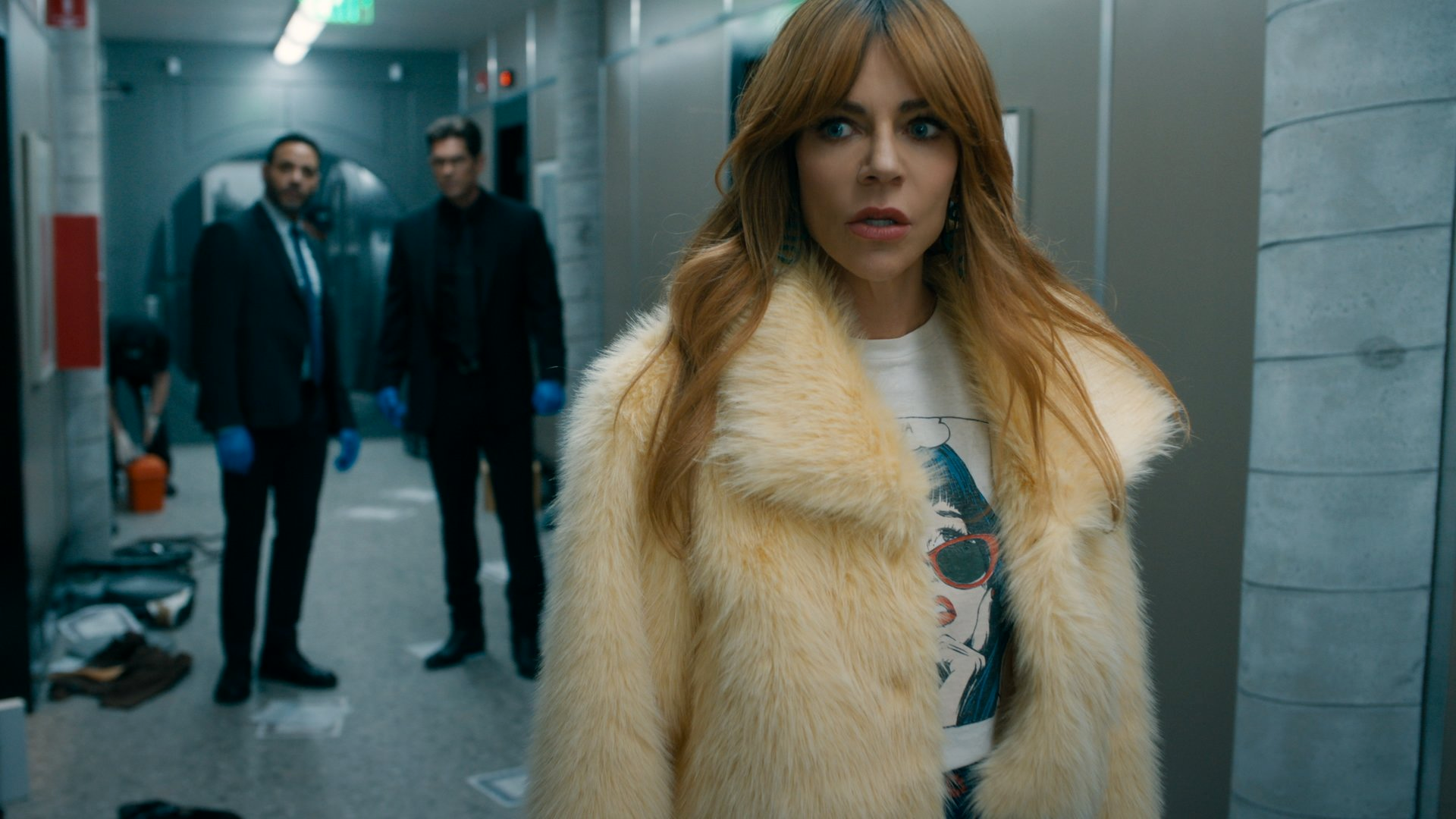 Morgan Gillory (Kaitlin Olson) arrives at Canyon Gate Private Vaults with Karadec, surprised to find Wagner already on scene—he says he was nearby when the call went out. The hit looks professional: cameras wiped, biometric access bypassed, encrypted logs circumvented. One security guard was on duty, Dean O’Connell (Jonathan Stanley)—his badge was found, but not him. Karadec suspects inside involvement. Morgan surveys the space and notices that expensive wines and designer clothes in surrounding vaults were untouched. She follows a banging sound to a locked cabinet, and Wagner and Karadec pull Dean out alive. He describes being jumped from behind by four men who took his weapon, zip-tied him, and dragged him into the closet. He couldn’t see much through the masks and gloves, but notes one of the men was chewing peppermint gum.