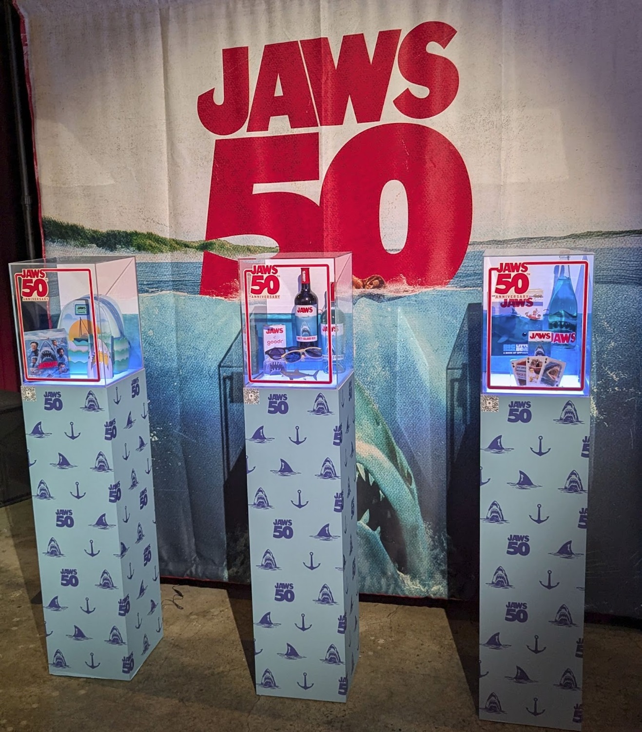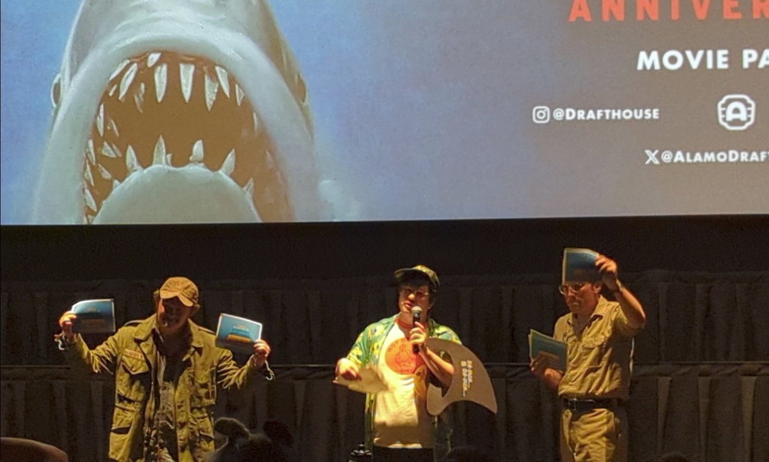 Last Friday, exactly 50 years after Jaws first made audiences afraid of the water, Laughing Place was invited to a special anniversary screening at the Alamo Drafthouse in Downtown Los Angeles. I attended with my Jaws ride-obsessed teenage son, Gideon. What followed was an evening of fun, fandom, and film that honored the movie that literally created the summer blockbuster.