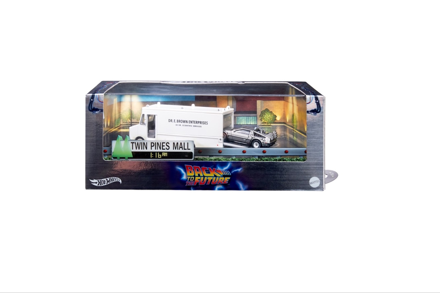 - The packaging for this one is also highly detailed, based upon the Twin Pines Mall setting where the scene with these two vehicles took place.