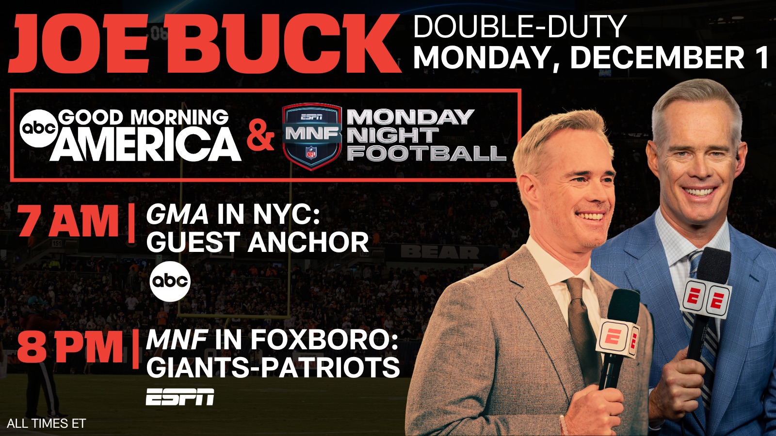 ESPN sports personality Joe Buck is set for a rather busy day next week, which will see him guest anchor Good Morning America before calling the Monday Night Football matchup.