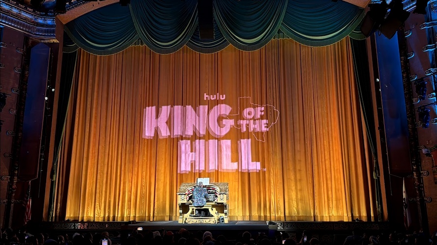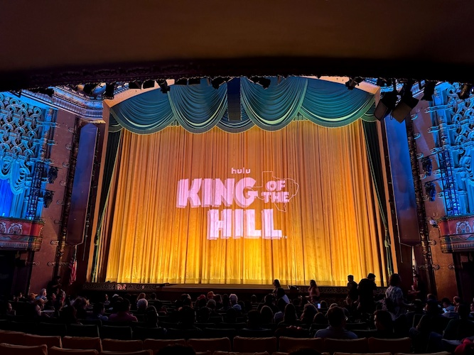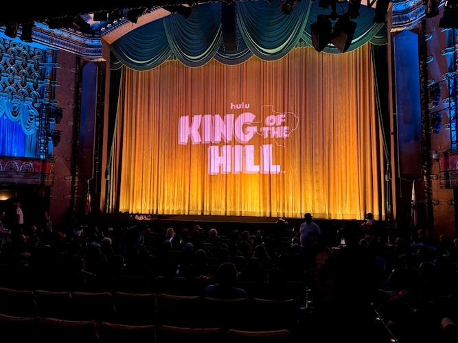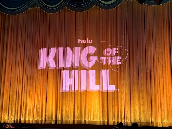 Inside the auditorium, the King of the Hill logo was projected onto the El Capitan’s curtain prior to the beginning of the show.