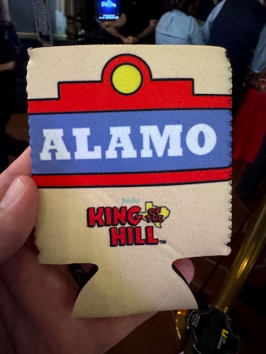 In addition to complimentary popcorn and soft drinks, everyone who attended this D23 event received Alamo beer koozies and King of the Hill mini-posters upon exiting.