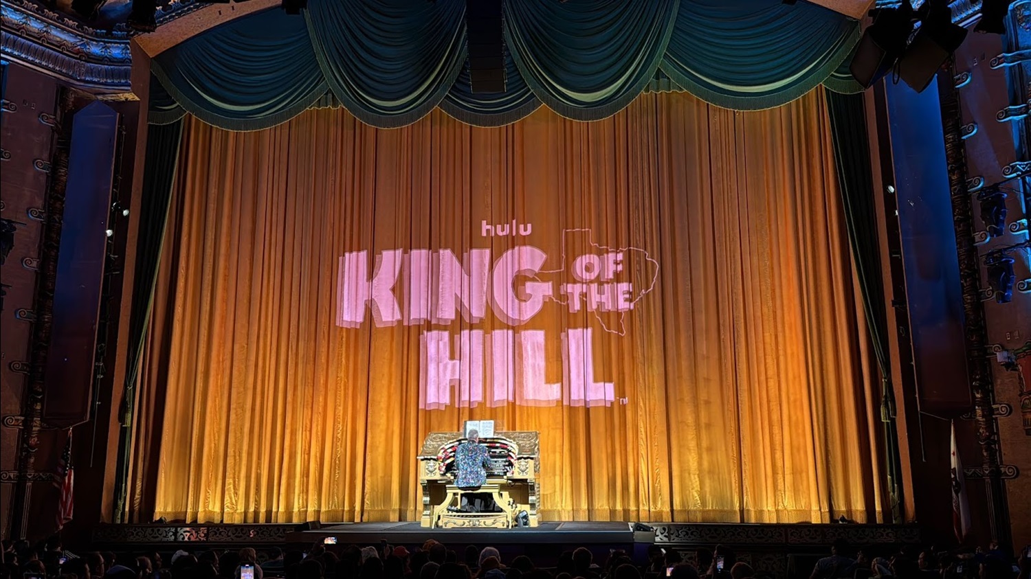Inside the auditorium, the King of the Hill logo was projected onto the El Capitan’s curtain prior to the beginning of the show.