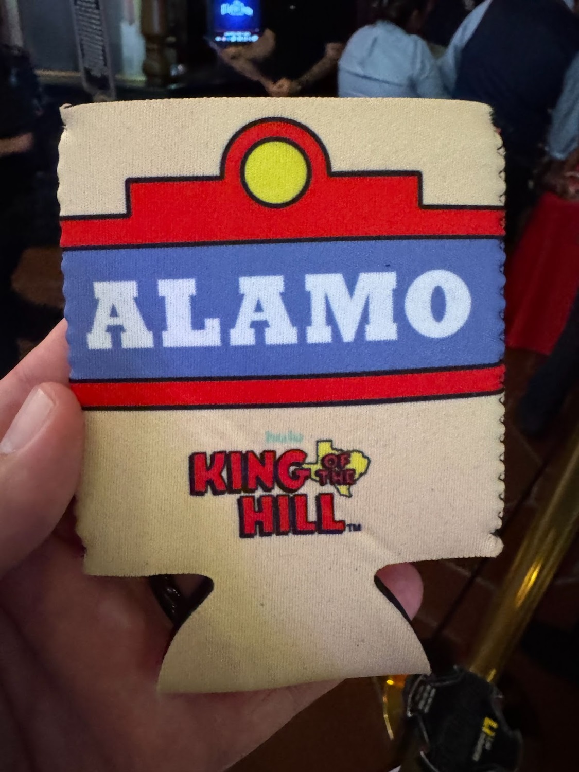 In addition to complimentary popcorn and soft drinks, everyone who attended this D23 event received Alamo beer koozies and King of the Hill mini-posters upon exiting.