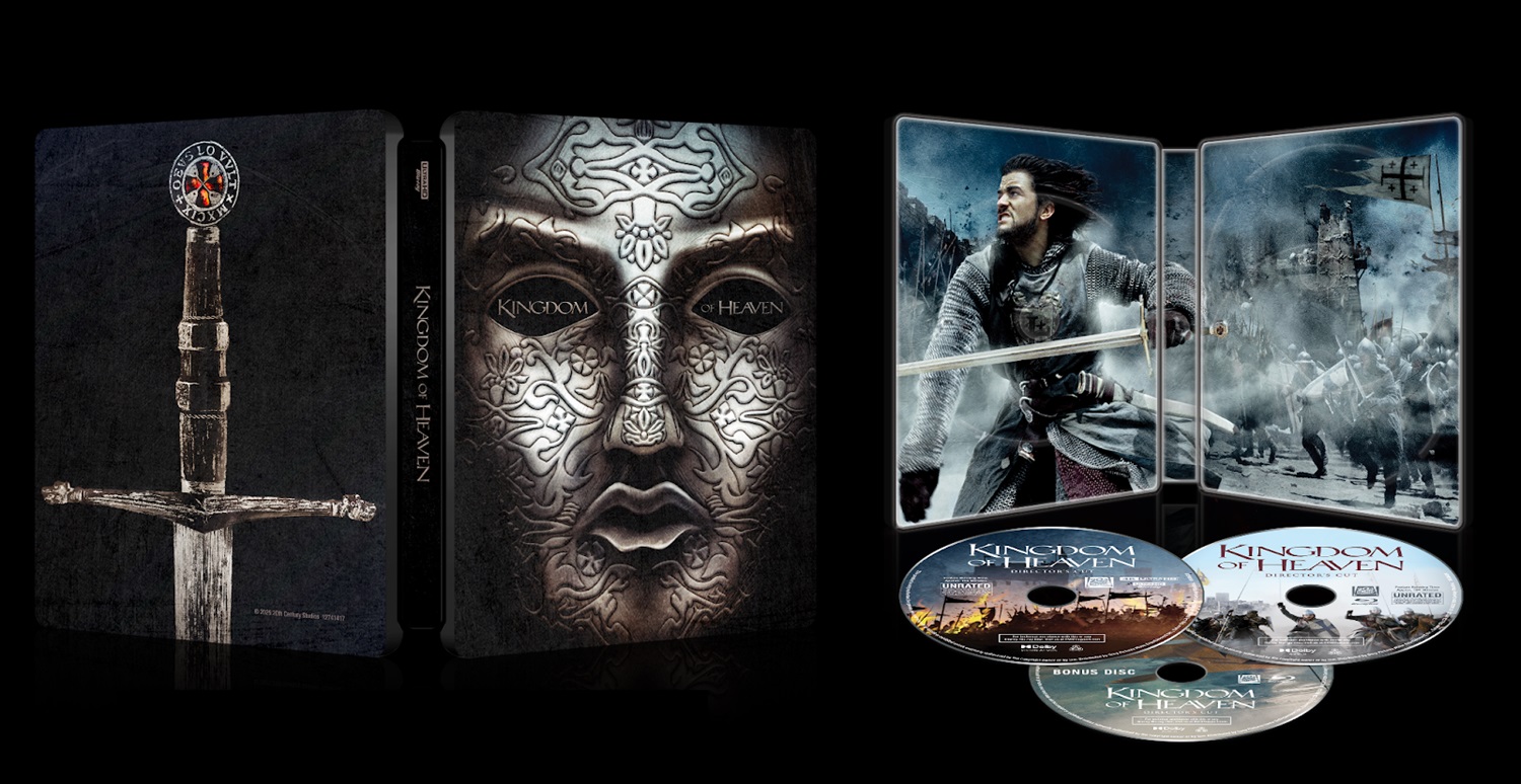- The 20th Anniversary Blu-ray edition of Kingdom of Heaven is a three-disc collection in a collectible SteelBook, highlighting the film's impressive weaponry and masks.