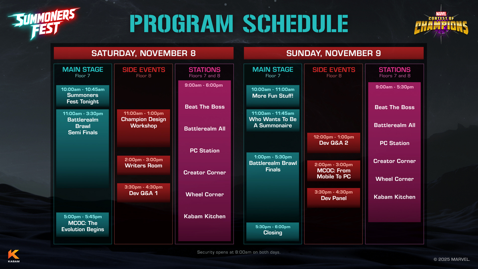 - Summoners Fest 2025 is a two-day live event celebrating everything Marvel Contest of Champions and you’re invited! Join your fellow Summoners, Creators, and Developers for an unforgettable weekend full of community, competition, exclusive reveals, and behind-the-scenes experiences.