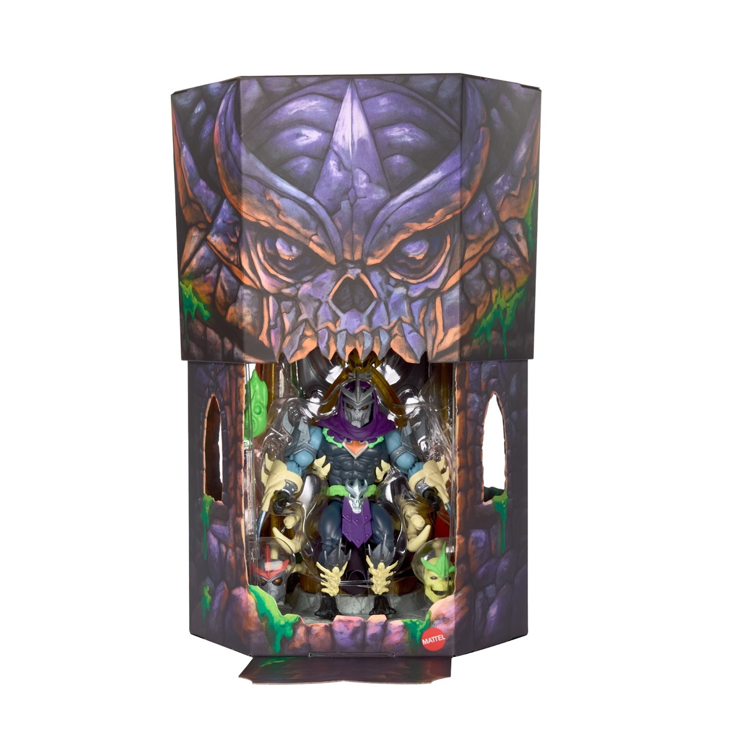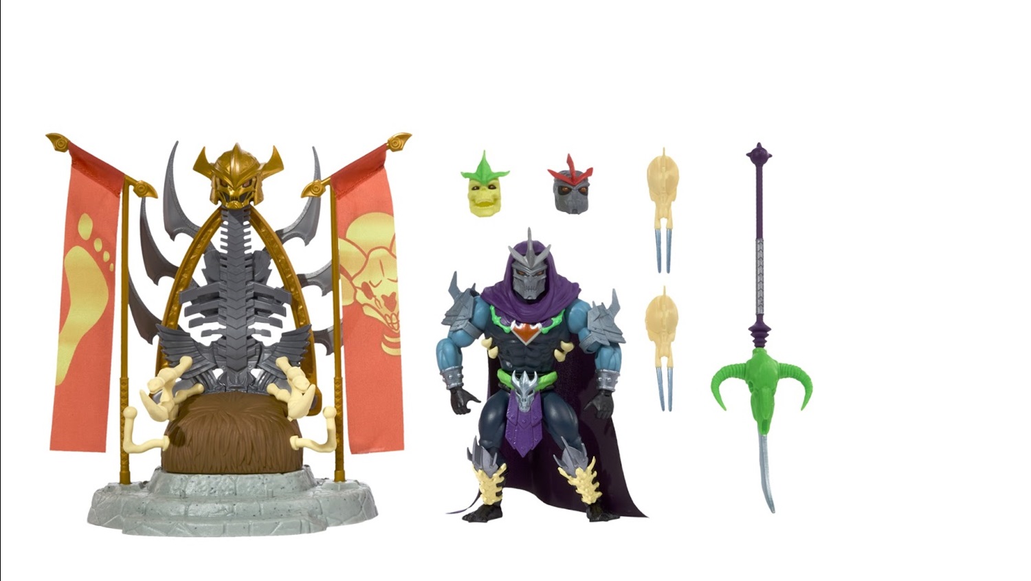 - In a climactic conclusion to the Turtles of Grayskull collaboration, the realms of Eternia and the New York City underground converge like never before. Enter the Skele-Shredder Deluxe Figure, a formidable fusion of two of pop culture’s most nefarious villains. Designed with premium articulation and rich detail, the figure includes interchangeable heads, dynamic weapons, and an intricately crafted throne that brings a serious presence to any display. Packaged in a collector-worthy box featuring an immersive unboxing experience for this epic crossover.