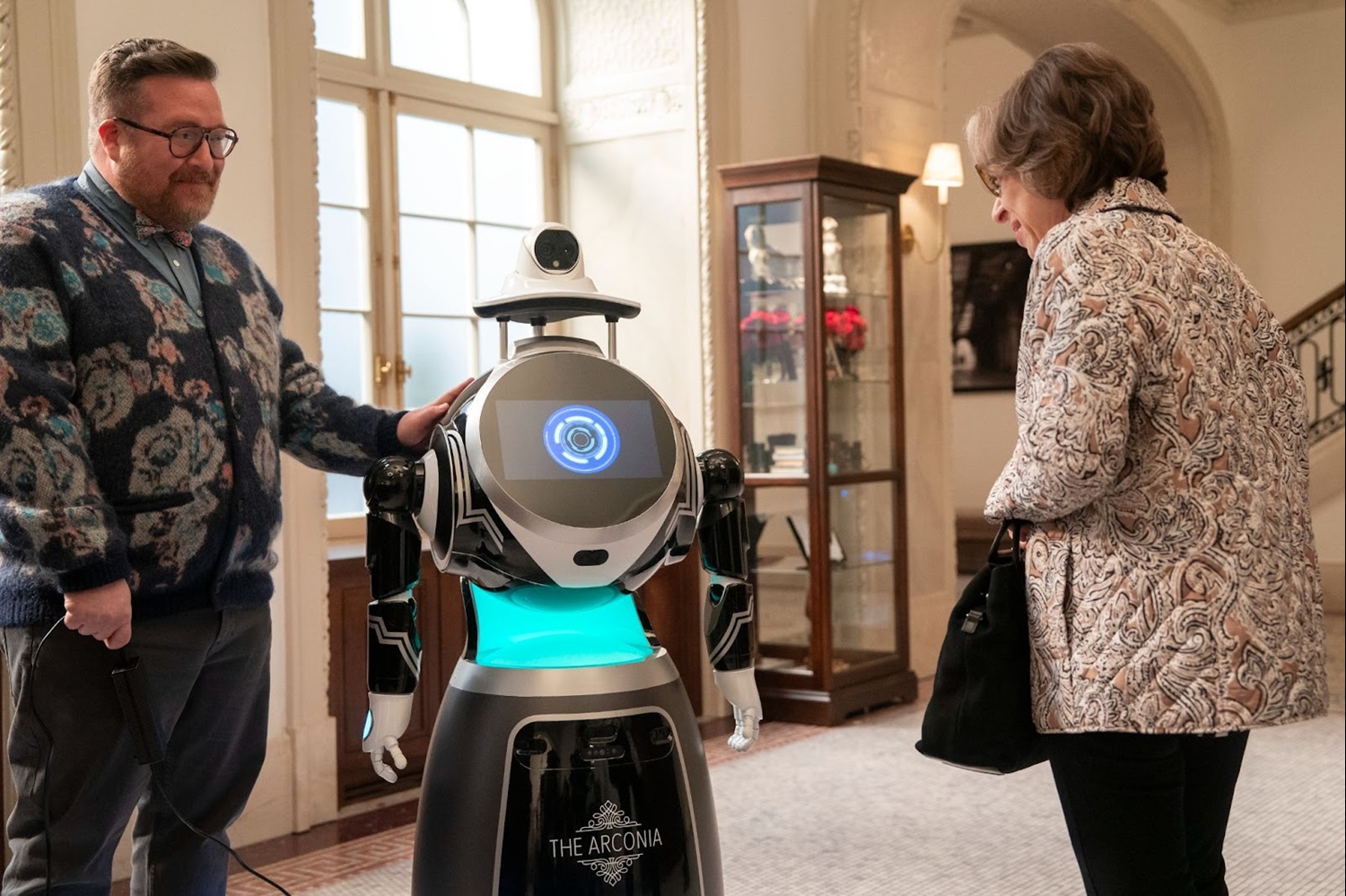 The next morning, Mabel grabs coffee in the Arconia lobby and chats with Charles about the severed finger. Maybe a cleaver sliced it off? Their speculation is interrupted by the debut of LESTR — the Logic-Engineered Secure Tenant Robot. Uma (Jackie Hoffman) sniffs that it’s meant to reassure tenants that automation isn’t out to overthrow them. Randall (Jermaine Fowler) insists the robot is harmless, programmed only to deliver packages and reminders, but it will need to scan everyone’s irises and fingerprints.