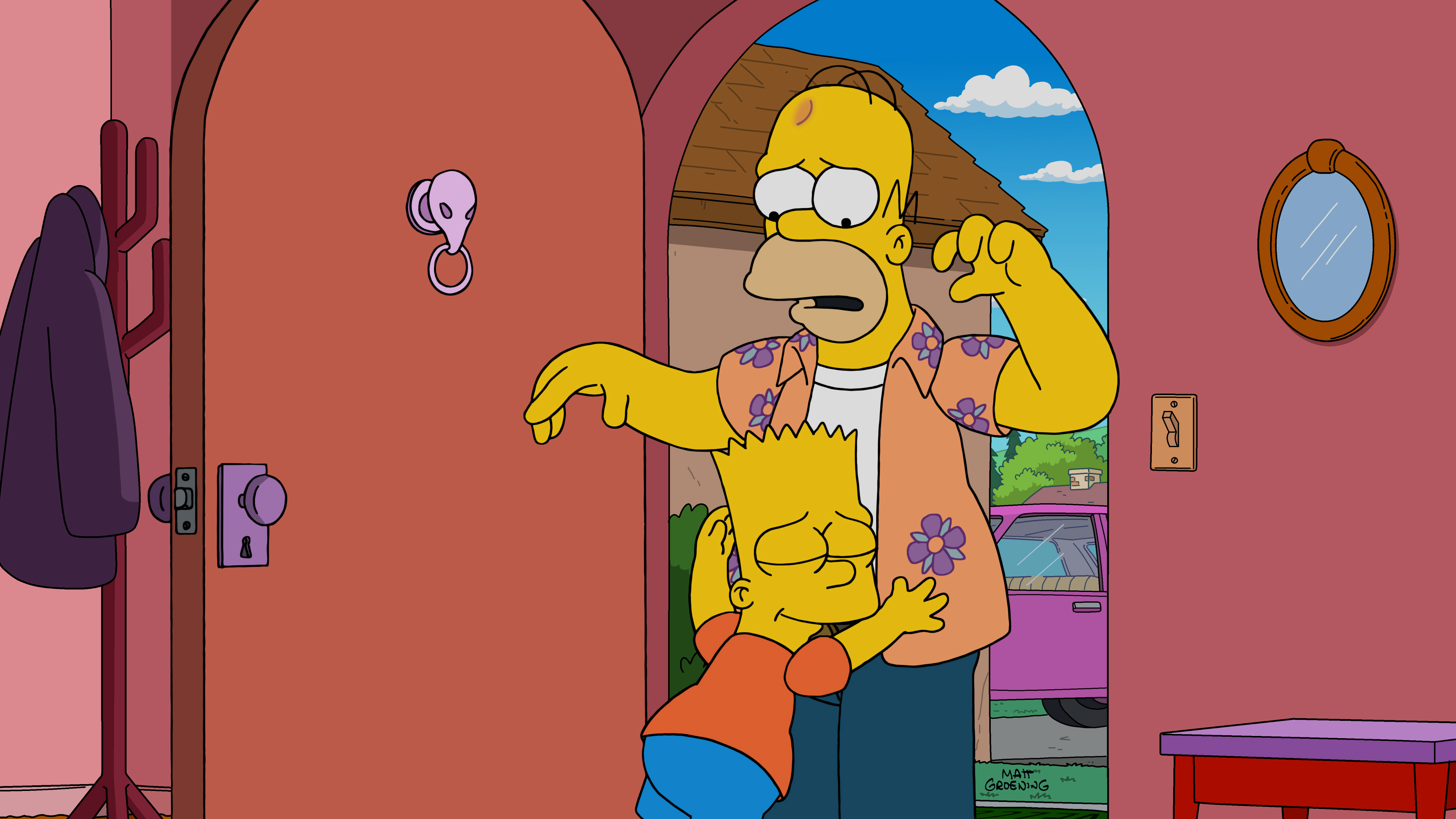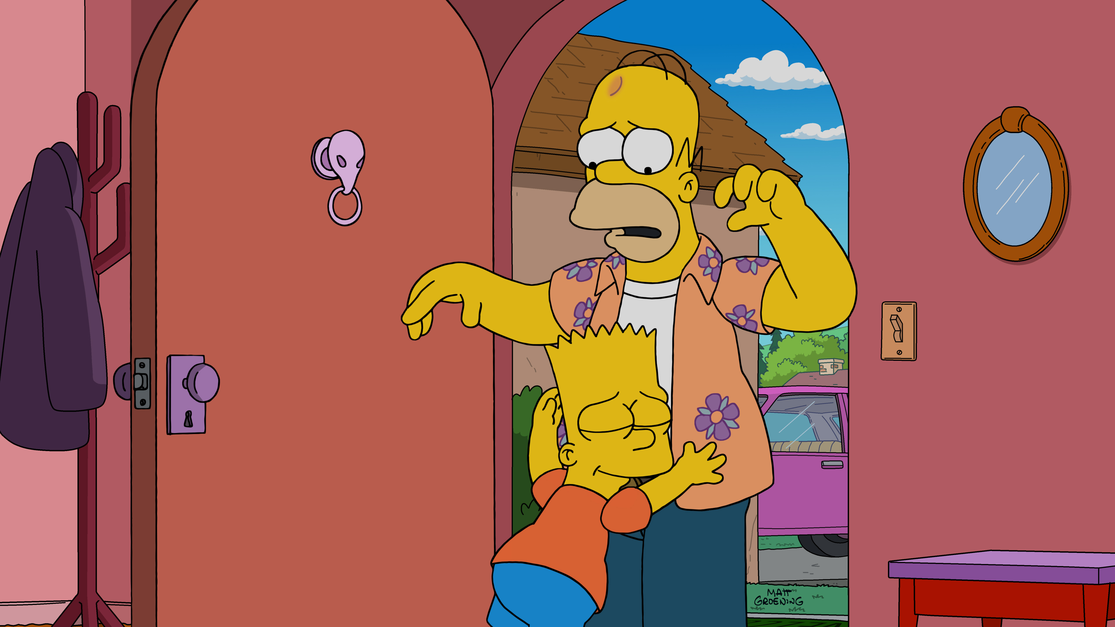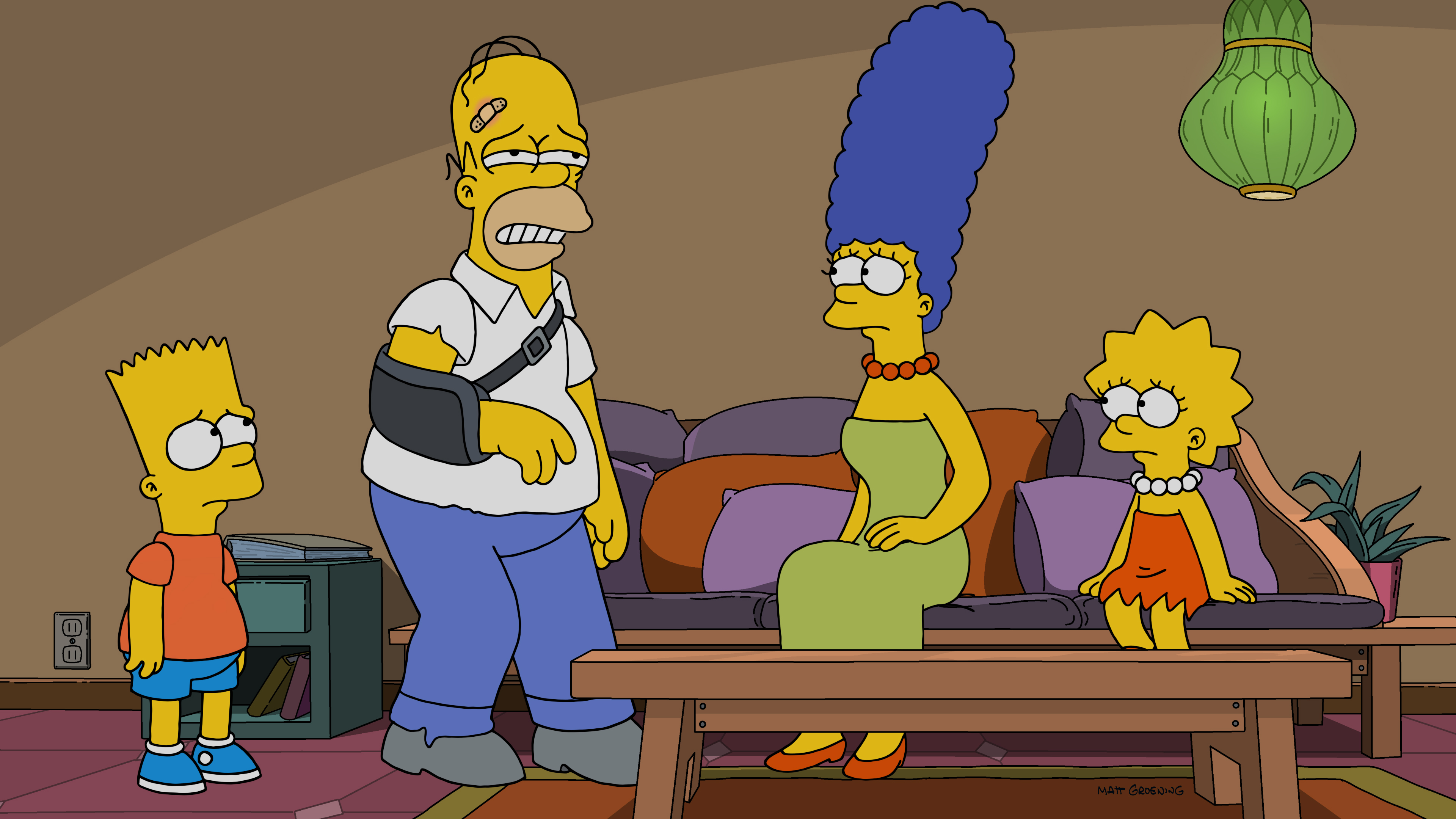 Their plan is to make Homer wear a greenscreen bodysuit under the Bumblebee Man costume, but this only results in Homer getting even more injured than he had been before. Soon an image leaks of Bumblebee Man working with a stunt double, and it turns out that Bart, Marge, and Lisa (Yeardley Smith) had all leaked it to the press to prevent Homer from getting further hurt.