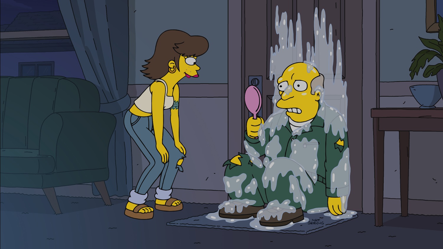 After he returns home from his workday covered in mutant snail slime, Gary is told by his daughter Shauna (Tress MacNeille) that the slime could actually be worth a fortune as a skin moisturizer treatment. So Chalmers goes into Burns’s office the next day, strips off his janitor coveralls to reveal a three-piece suit (“A businessman!" exclaims Burns) and pitches a plan. Next thing you know, Gary Chalmers is riding high as the CEO of Escarbro, which proves to be a smash-hit with middle-aged men.