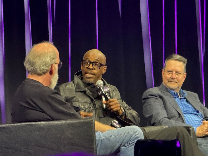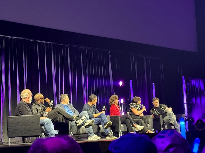 Season 2 director Joe Johnston and executive producer Ron Howard opened the panel via video messages. Johnston, one of the original “crazy kids" at ILM, reflected on the company’s culture of pushing boundaries. Howard described how the new season would chart ILM’s transition into the digital era, with stories from The Phantom Menace, Twister, War of the Worlds, and Pirates of the Caribbean.