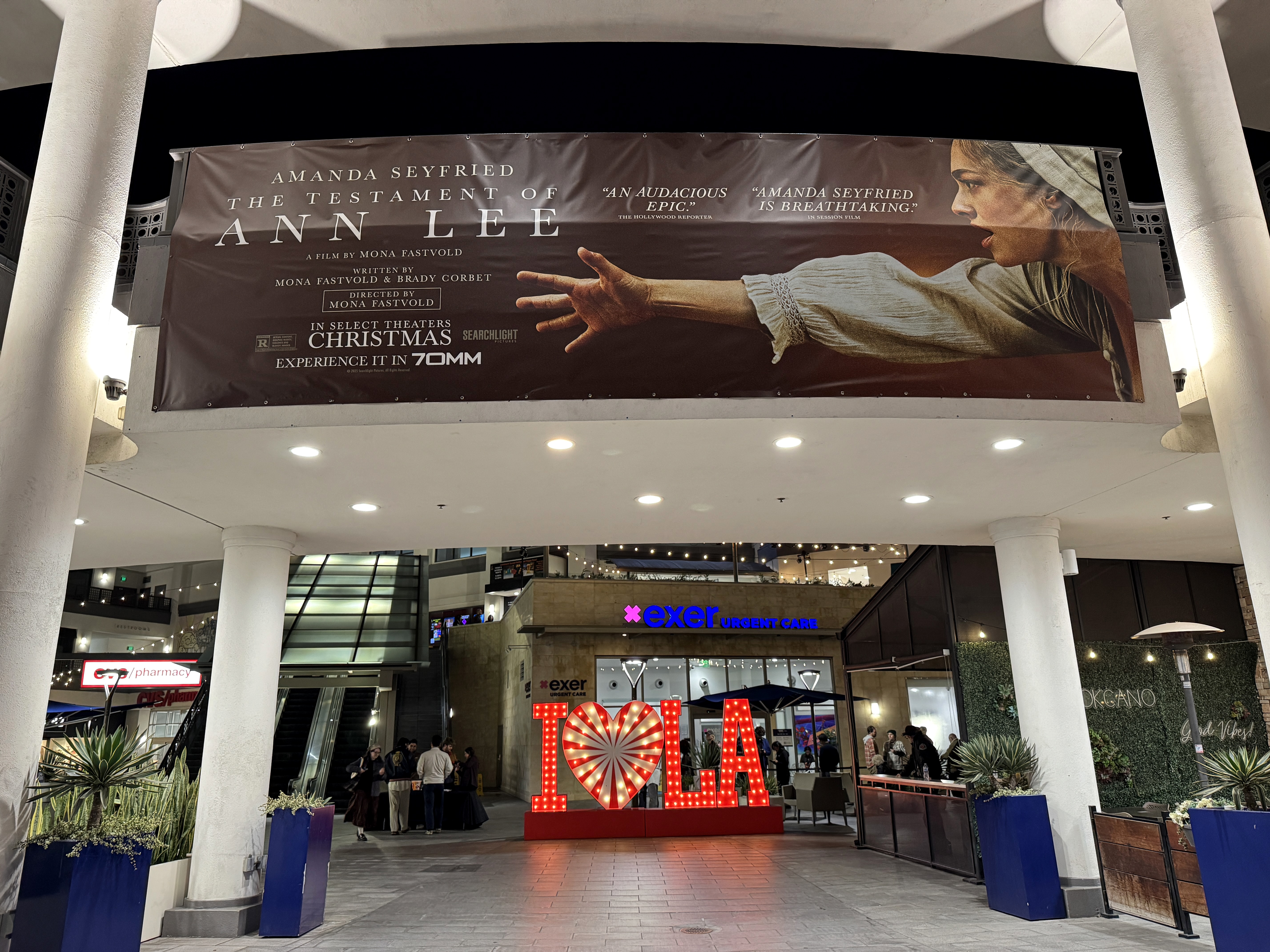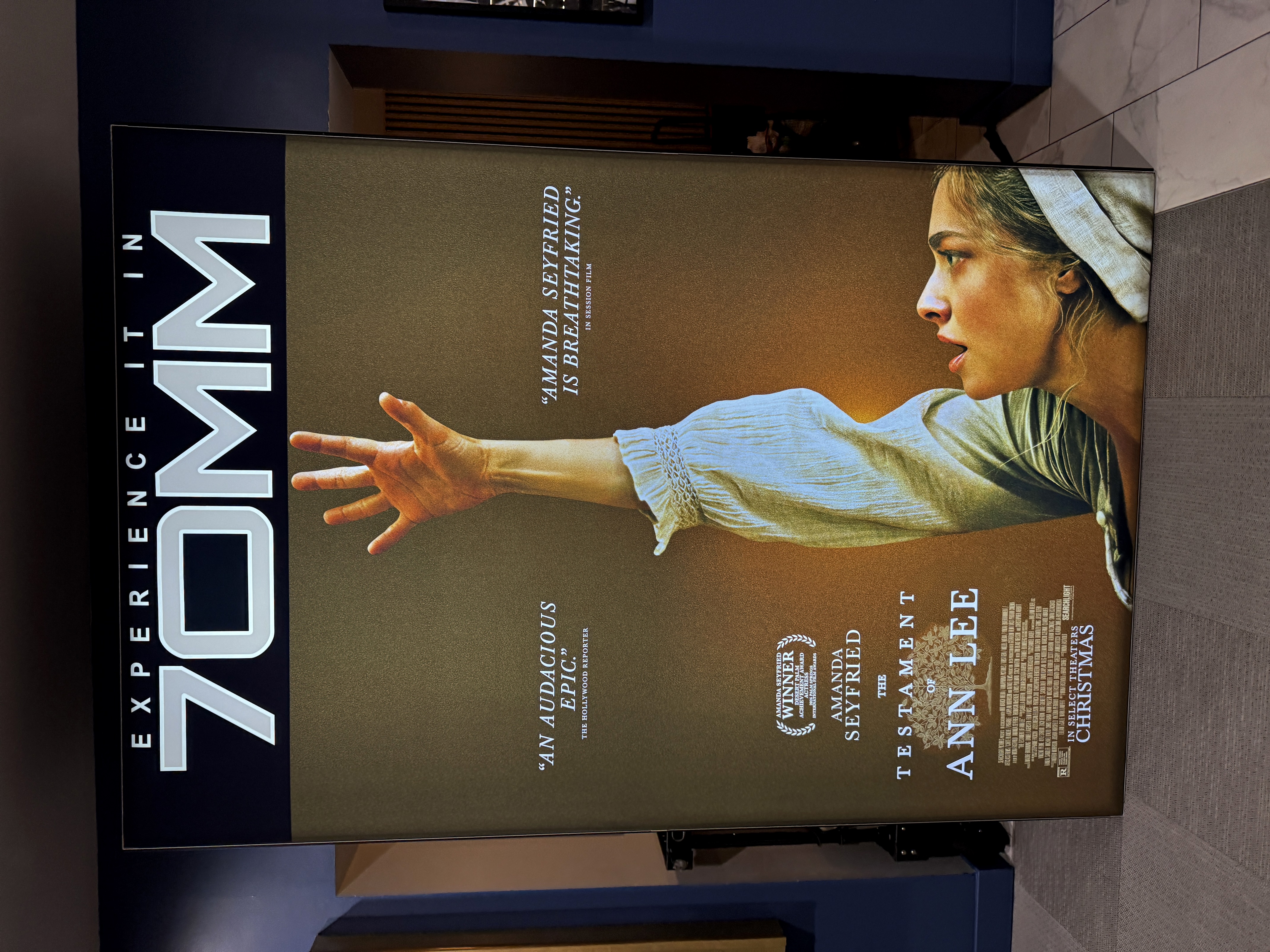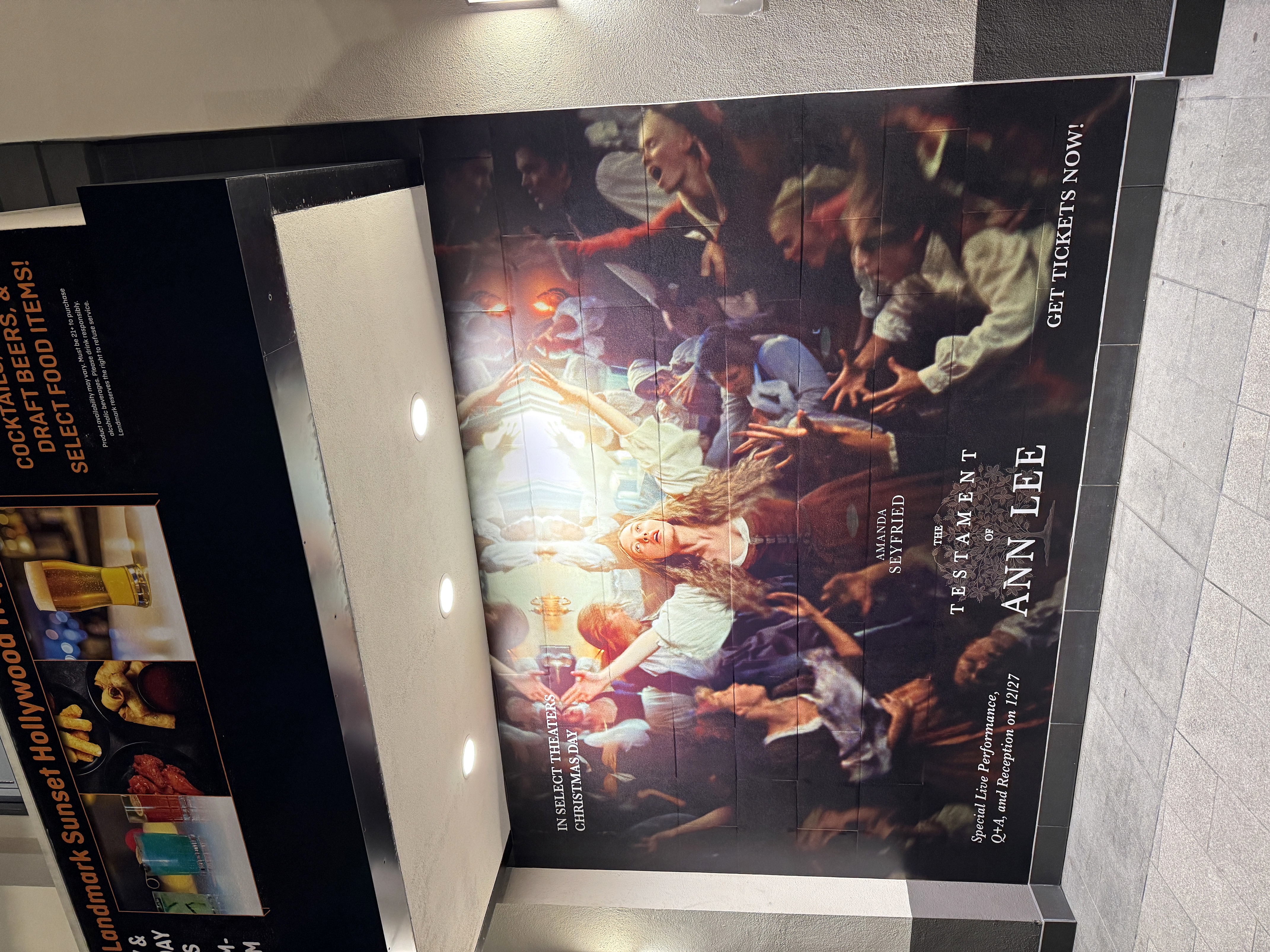 Outside the theater there were banners and poster art promoting The Testament of Ann Lee.