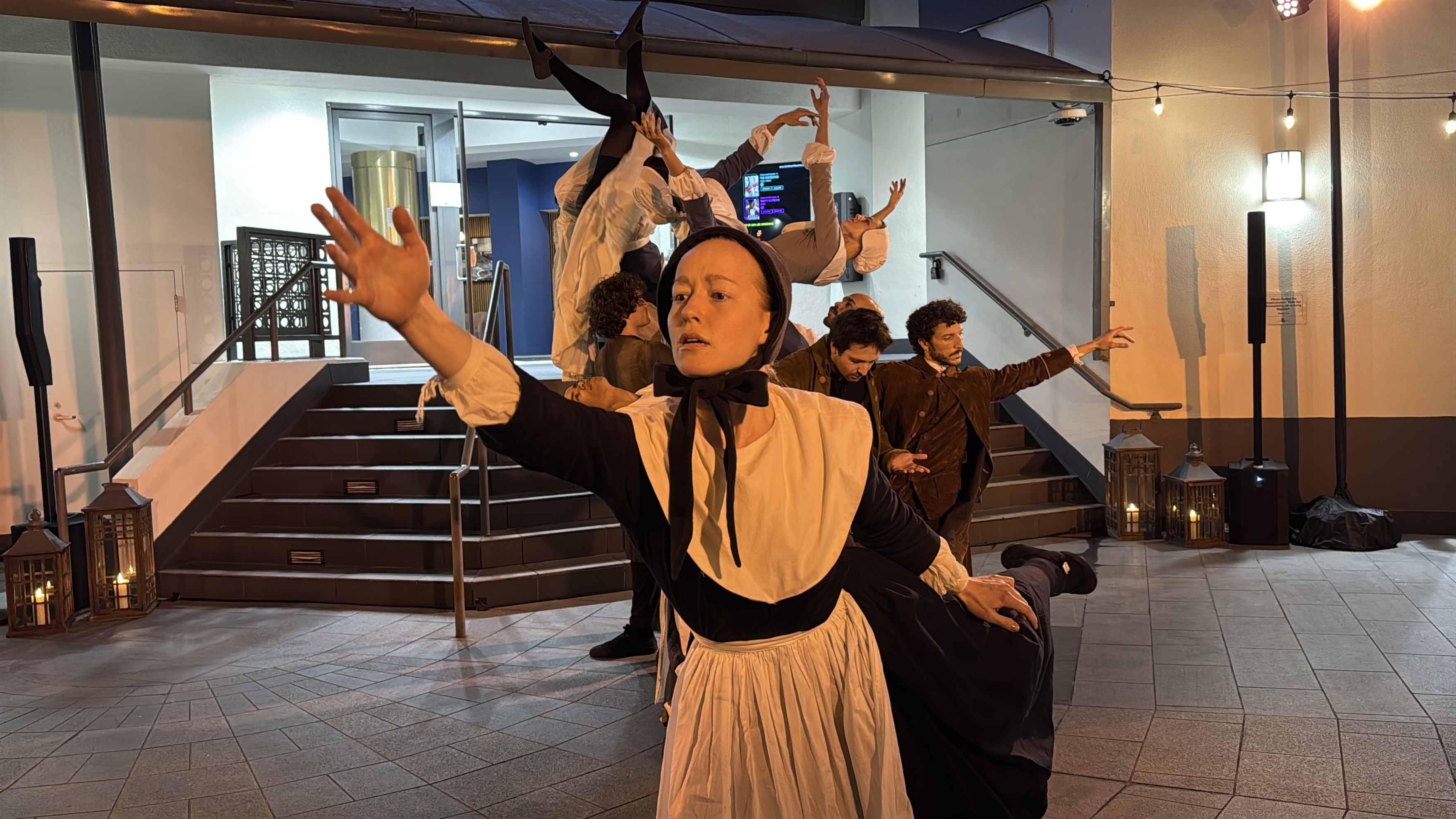 First up, outside the main entrance to the Landmark Sunset movie theater where the screening was held, Searchlight had a dance troupe perform an impressive interpretive dance routine set to songs from The Testament of Ann Lee. You can watch the full performance in the YouTube video embedded below.