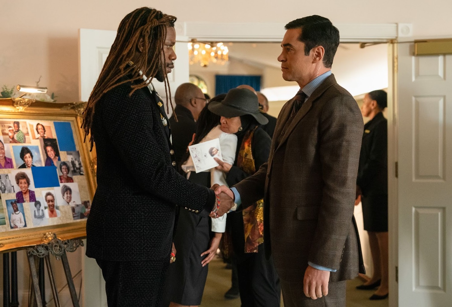 Will brings Rafael to the room, announcing that he’s putting him under arrest. Rafael realizes that it was Will who messed with his phone and computer. When Rafael tells Will how wrong it is to do this at Ms. Pearl’s funeral, Will points out how wrong it was for Rafael to hand off drug money there. He informs Rafael that his fixer is dead and asks him to think about Sunny. Rafael surrenders to Will’s protective custody. Emil walks in to see Will putting handcuffs on Rafael, and Will realizes that Rafael’s right-hand man was the only other person who knew about Rafael’s fixer. Two other men enter the room, and Will, sensing trouble, dives behind the casket with Rafael just in time to avoid being shot. Emil has staged a coup. Unfortunately, he didn’t count on Will Trent coming to Rafael’s rescue. Will takes out one of the goons just as the GBI swarms in.