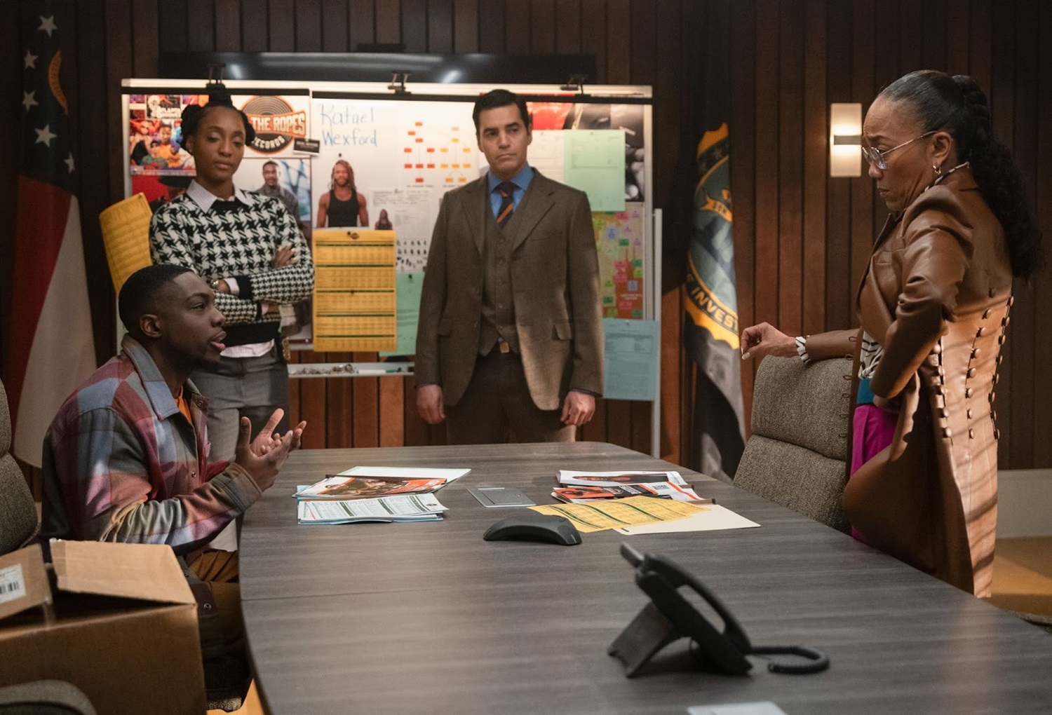 The next day, Will and Faith Mitchell (Iantha Richardson) fill in their boss, Amanda Wagner (Sonja Sohn), about how Faith’s son, Jeremy (Deion Smith), is an informant on Rafael’s RICO case. Amanda is angry that this was kept from her, but she does seem pleased with the information Jeremy has procured. The Piedmont Kings are disguising drug sales as sales of music and merchandise for artists whose sales have been bad. Jeremy was able to retrieve a box of t-shirts from a dumpster that had been written off as “sold" for evidence.