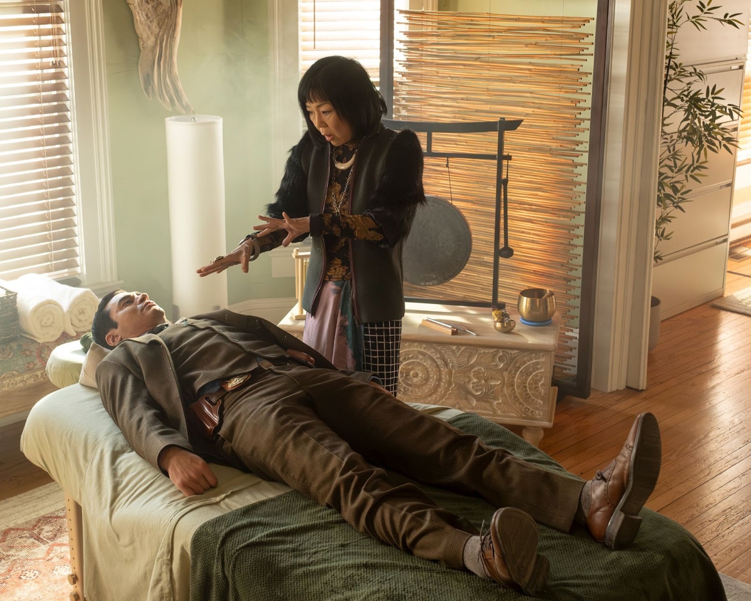 The next morning finds Will Trent (Ramón Rodríguez) finally agreeing to try therapy, and an unconventional approach, at that. His therapist (Margaret Cho) uses bells and chimes to soothe her patient, asking Will to physically locate the emotional pain in his body. He tells her it’s concentrated in his stomach. She tells him that his pain wants some attention, something he needs to embrace and hug to make it calm down, something it will need repeatedly. She also prescribes him some kind of essential oils formula that she calls optimism drops. She describes the essential component of a desire to remain alive - having excitement for the future. We don’t hear Will’s response when she asks him if he wants to be alive.