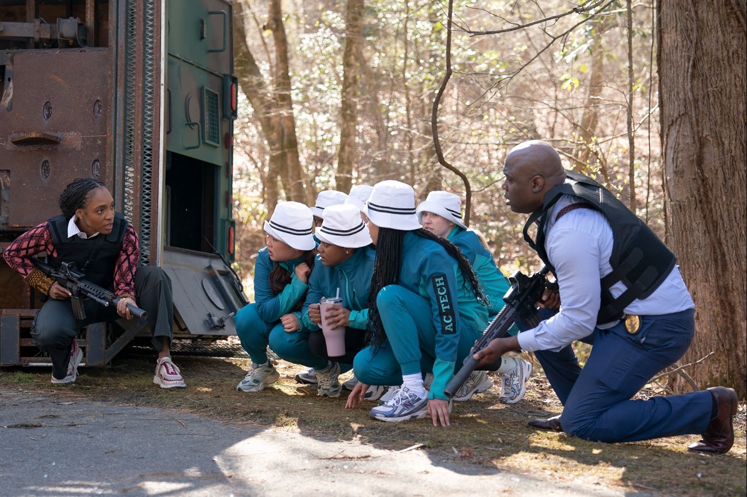 Having moved vehicles to create a makeshift barricade, Ormewood, Faith, and Franklin realize they’re running out of ammunition to keep the terrorists at bay. Getting creative, Ormewood thinks they can blow up a battery on the flatbed using a military trick he learned in Iraq. The only problem is that it’s 80 yards away, but as luck would have it, the girls are archery champions. Jules (Anire Kim Amoda) shoots the explosive while her friends shoot fiery arrows at it, causing the truck to explode and take out all but one of the terrorists, who was in the trees a safe distance away. Out of ammo, Ormewood thinks he can draw him out and grab a gun off one of the dead terrorists.