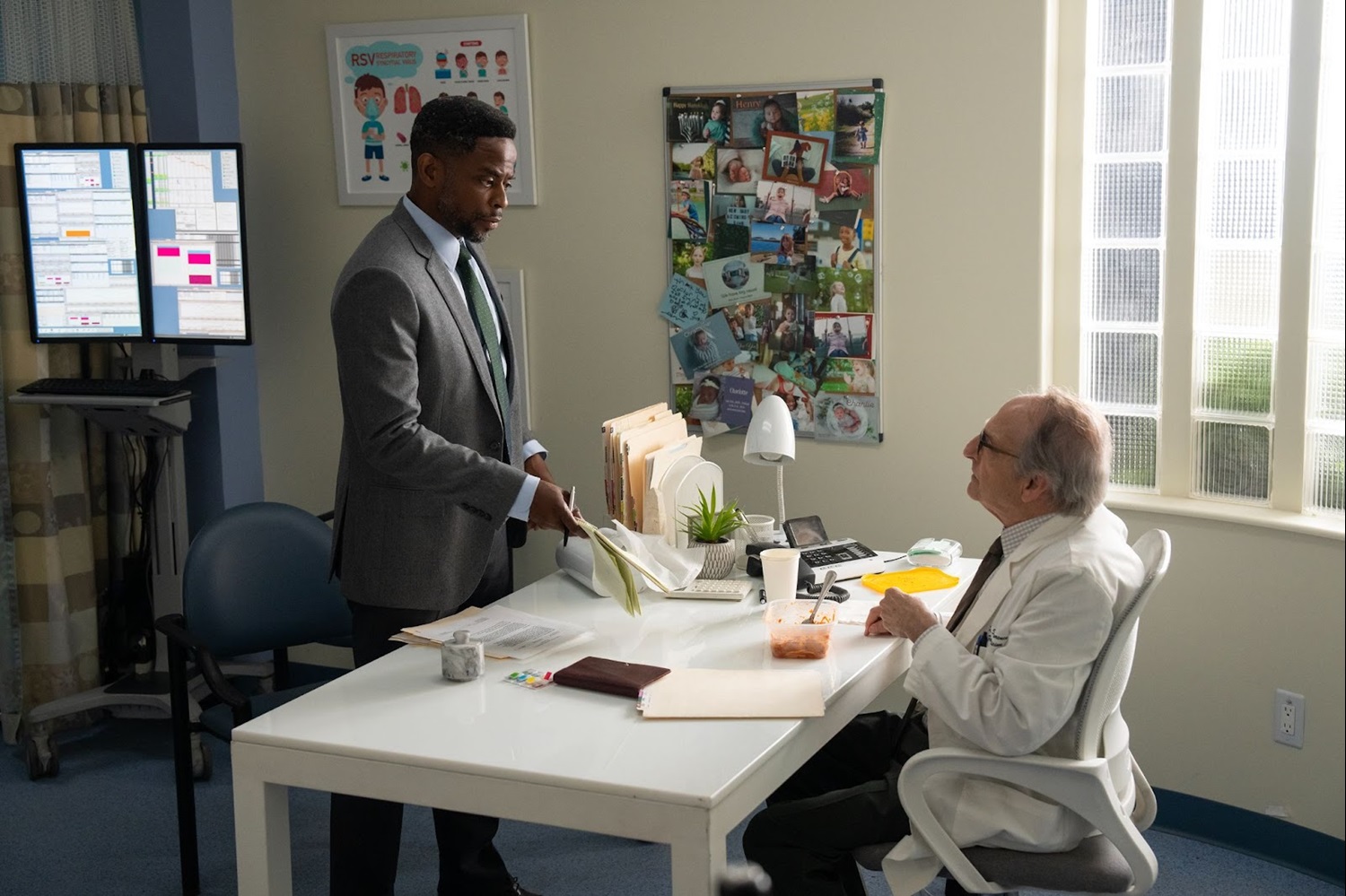 “I never saw Hercules again," Natalia Grace tells Detective Brandon Drysdale (Dulé Hill), crying as she recalls the traumatic experience. Cynthia Mans (Christina Hendricks) sits with her, upset that Drysdale is continuing all this questioning when they have X-rays that prove she’s a child. Drysdale turns the camera off, having been recording the interview, to speak off the record. He tells Cynthia that he thinks he has found a strategy. Because Natalia Grace was placed in the psychiatric hospital, she wasn’t allowed to be part of the re-aging process, so he can fight that the decision was made the wrong way. He will file a subpoena for Natalia’s sealed medical records. “We should be able to get the ruling thrown out," he tells them. Natalia Grace looks so happy.