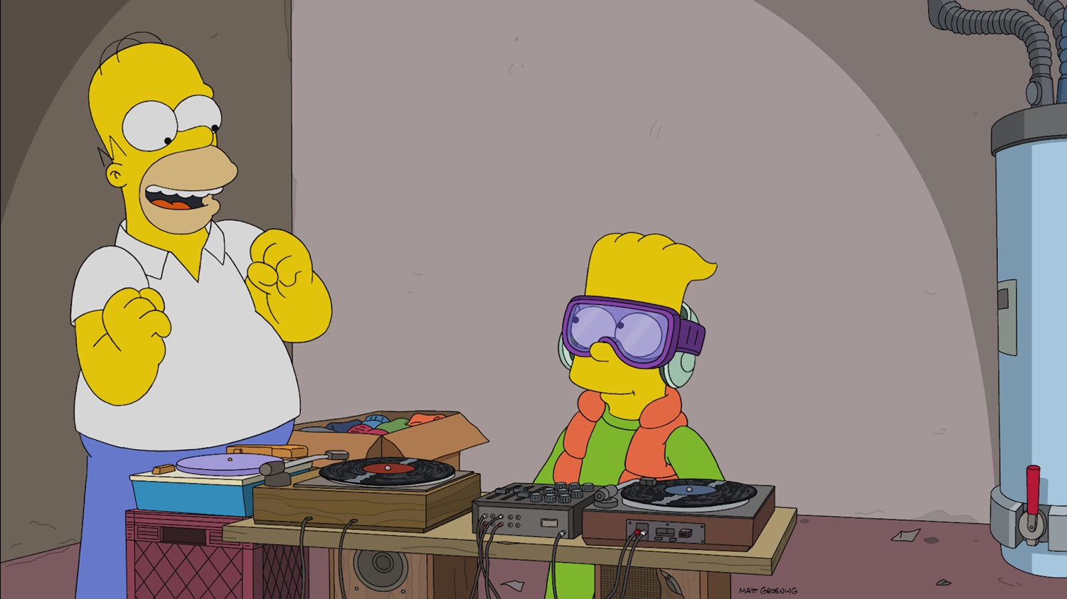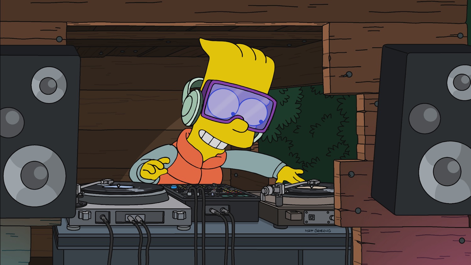 “The Flandshees of Innersimpson" begins with the Simpson family noticing a bunch of billboards for popular DJ, which have some pretty funny names like “Sextow31" in the world of Springfield. And when Homer (voiced, as always, by Dan Castellaneta) learns that wealthy DJs often buy mansions for their parents, he begins to aggressively encourage Bart (Nancy Cartwright) to pursue that line of creative work. Homer provides his son with his record collection, which includes hits by Devo and Smash Mouth and sets him up with a couple turntables. Where this starts to get really outlandish is when Homer rents out his own billboard advertising Bart’s “residency" in his backyard treehouse, and a lot of the kids from Springfield Elementary School show up to party the night away– this feels like a stretch even for the elastic reality of The Simpsons. The show never hangs a lampshade on why these 8-to-10-year-olds would be permitted to party outside for all hours of the night, but it mostly serves as a plot device to get Ned Flanders (Harry Shearer) really angry at his neighbor.