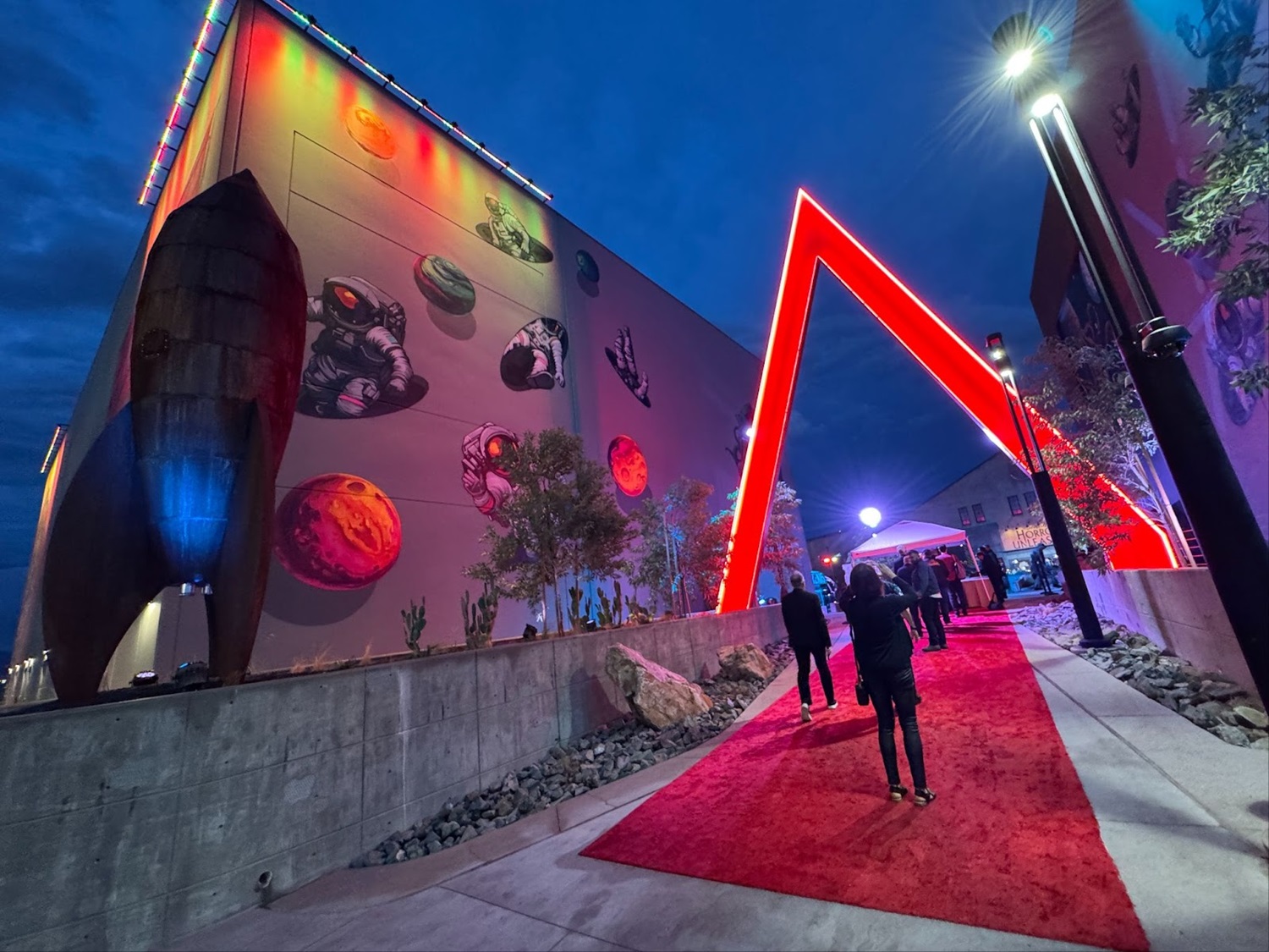 A step-and-repeat area was set up outside the entrance for celebrity interviews, along with other Area15 photo ops and decor.
