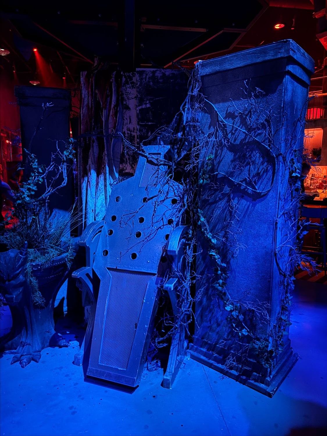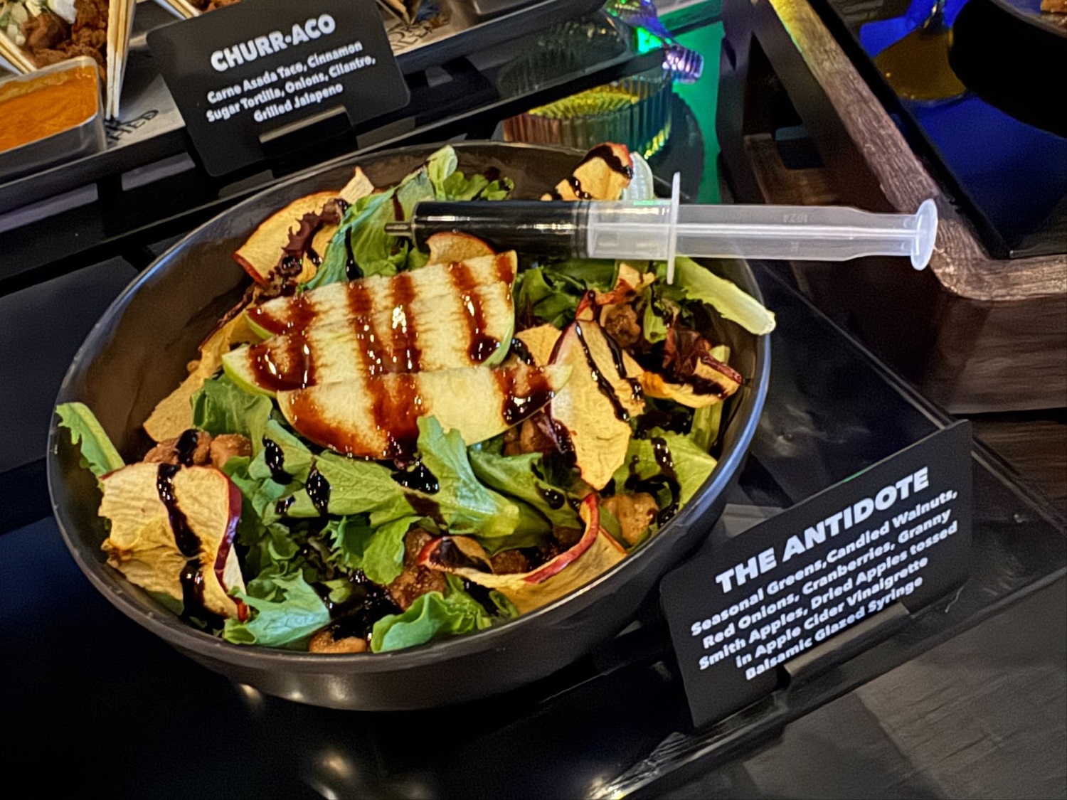 During my visit, I had the wonderful opportunity to interview five representatives from Universal Horror Unleashed: General Manager Kim Scott, Vice President of Entertainment Art & Design TJ Mannarino, Show Director Nate Stevenson, Assistant Director of Live Entertainment Alicia Benneche, and Executive Sous Chef Ryan Casarez. In the embedded video below, you can watch as they tell me all about the experience, intercut with a tour of the themed areas outside of the haunted houses themselves.