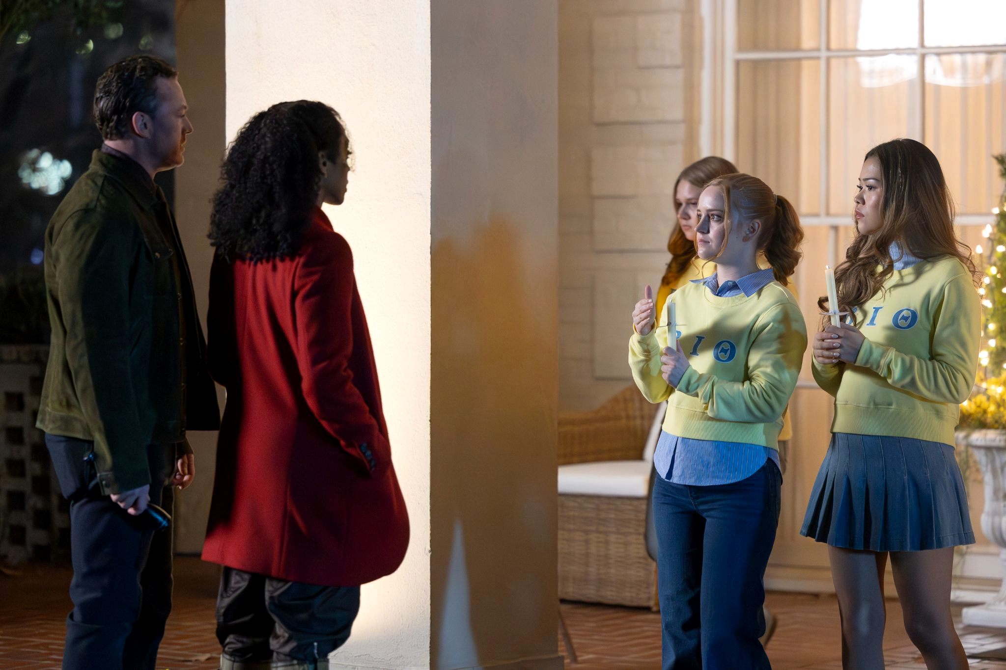 Faith Mitchell (Iantha Richardson), Michael Ormewood (Jake McLaughlin), Franklin (Kevin Daniels), and Angie converge on the Delta Chi Kappa house to find pledges cleaning the front porch with toothbrushes. A figure ducks away from the living room window. None of the pledges will speak — none are allowed to — until chapter president Sean (Jacob Buster) steps out to manage the situation. Angie announces that Paxton is dead and that she’s ready to start making hazing arrests.
