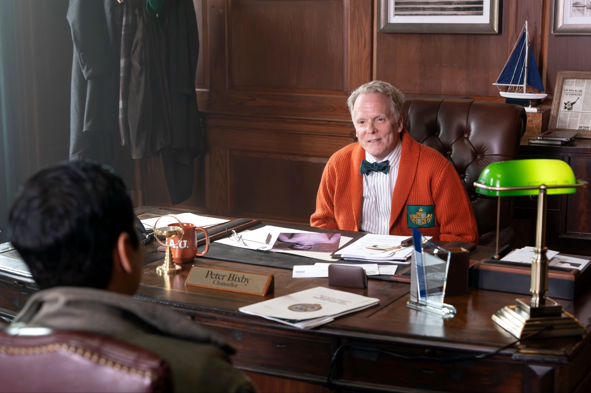 Will Trent (Ramón Rodríguez) arrives at Georgia Atlantic to interview Chancellor Peter Bixby (Daniel Pearce), who seems far more concerned with the Boozy Booster Brunch and the edits coming back from the Wine and Winners Party than with the dead student in his fountain. The victim is Paxton Cole, honor roll, president of Delta Chi Kappa fraternity. Bixby floats the theory that Paxton witnessed a drug deal. Will points out, patiently, that witnessing a drug deal does not typically result in a man being stripped to his underwear, deposited in a public fountain, and duct-taped with a message. Bixby’s assistant Sheila (Helen Huff) knocks twice before he dismisses Will altogether.