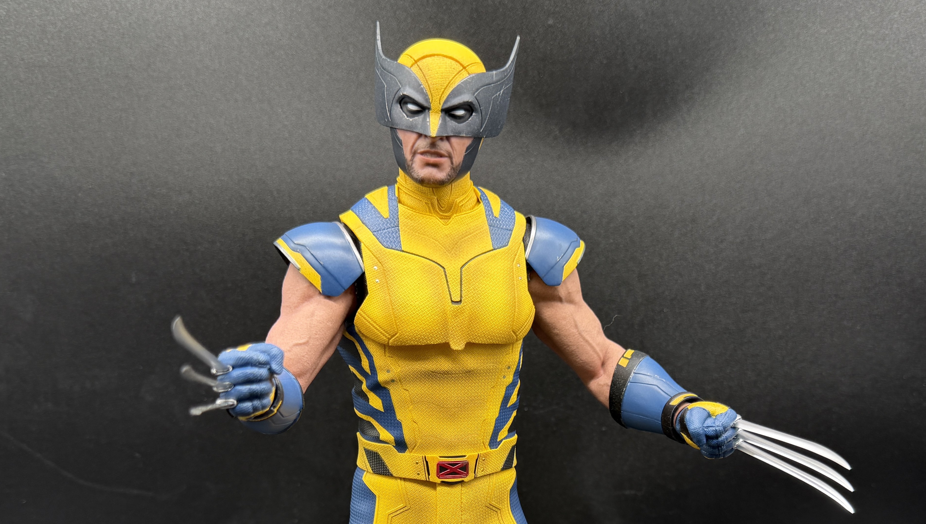 Wolverine alone is iconic. Hugh Jackman's movie version of Wolverine is iconic. But until Deadpool & Wolverine, we'd never seen Jackman dressed in anything resembling the character's comic book costume. So as a lifelong Marvel fan, it still makes an impression that we finally got Jackman in this costume at all, much less that there's such a lifelike sixth scale version of it on my shelf.