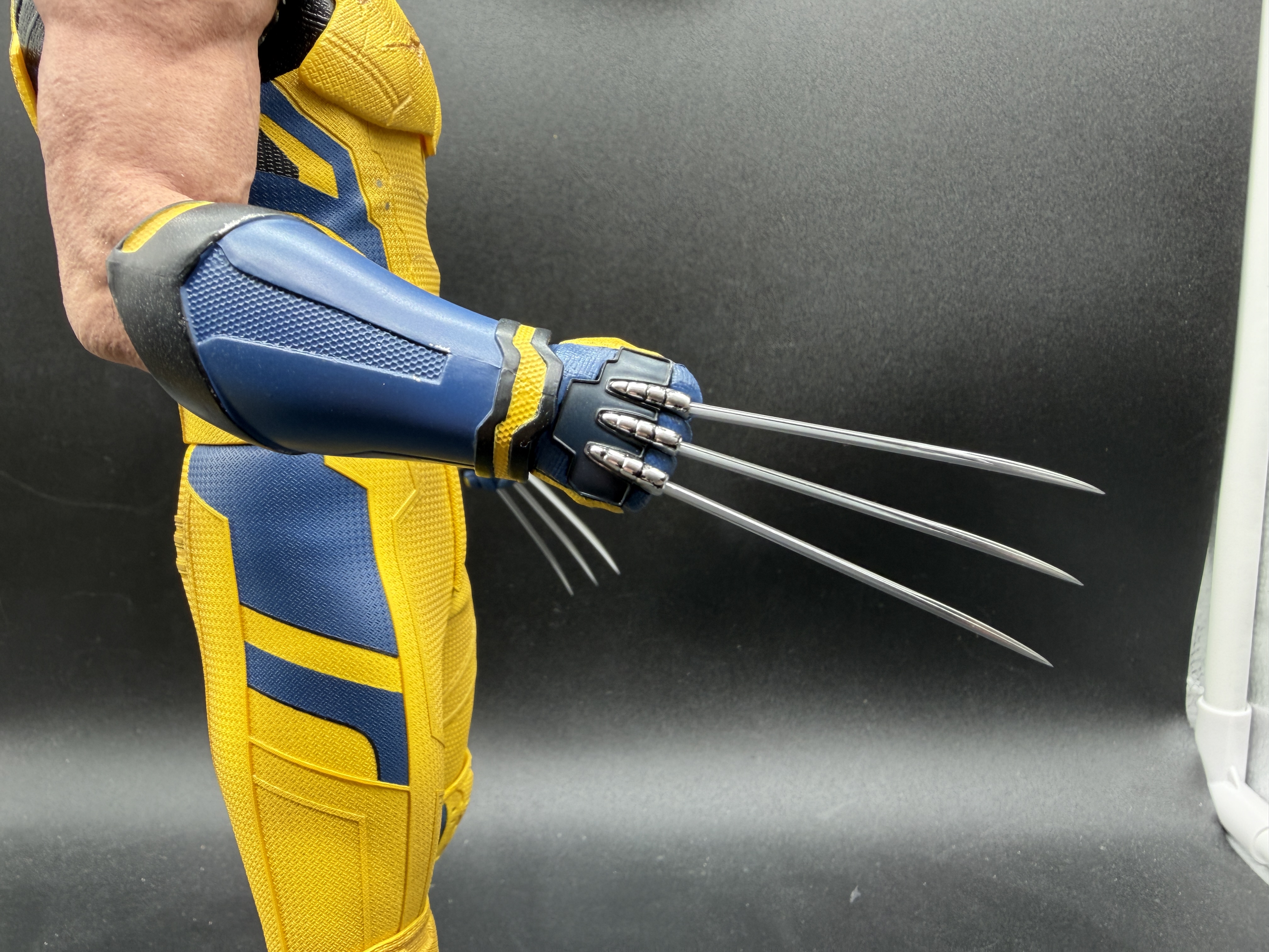 The details along the costume are superb, including on his gloves, complete with the metal "sheathes" his claws emerge from.