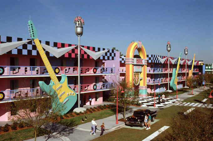 All Star Music is one of three All Star hotels. Here the resort and property has a distinctive music theme: Calypso, Jazz, Rock, Country, and Broadway. Building exteriors and interiors are themed to match the subject - like the massive jukeboxes and electric guitars that adorn the Rock Inn. Animal Kingdom Resort Area 1801 West Buena Vista Drive