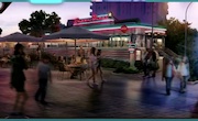 A new lake which will be the focal point for entertainment experiences and will also connect each of the new park areas. Avengers Campus open July 20, 2022.