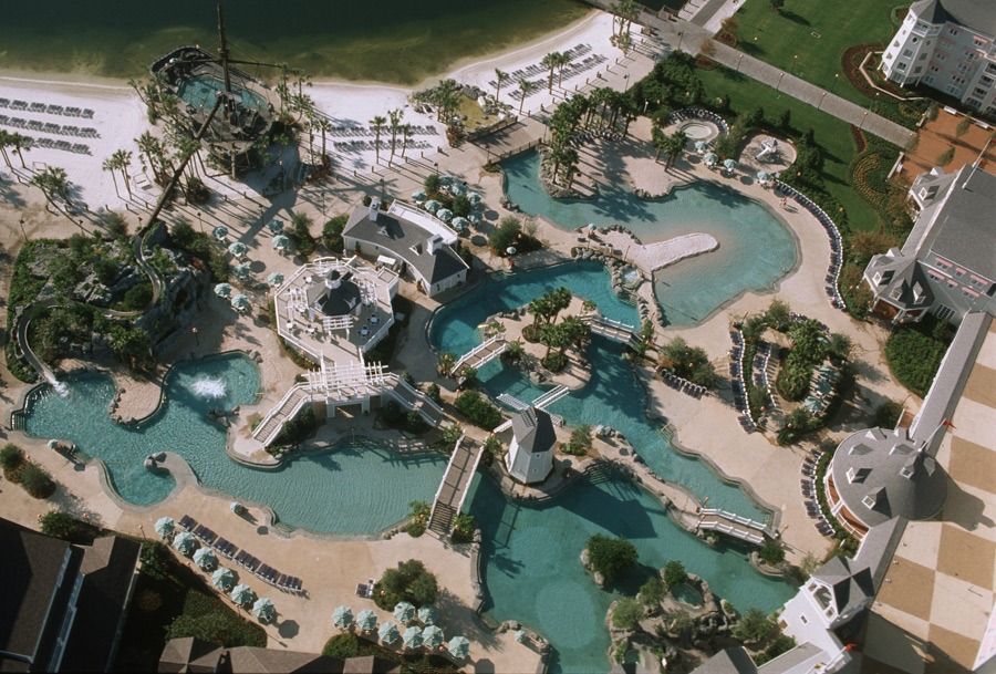 - Feature Pool Stormalong Bay: Zero-depth entry, sand bottom, water slide, shipwreck theme