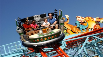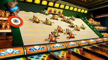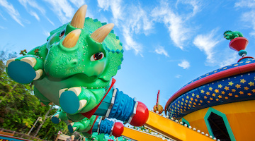 Visit a prehistoric carnival unlike anything you've ever imagined. Your dinosaur hosts want you to have a good time, so they've prepared rides and games for you to enjoy. Kids can spend time in the Boneyard looking for fossils, and those hoping to time travel can get a more "realistic" experience on DINOSAUR.