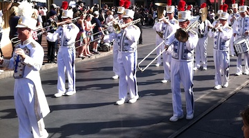 Entertainment When the sun sets, Disneyland park takes on a whole new look and feel. At night, the park lights up with marvelous shows, parades and fireworks that give every guest a "kiss goodnight" before the evening ends.AttractionsA Christmas Fantasy Parade★★★★★Disneyland Band★★★★☆Disneyland Resort All-American College Band★★★☆☆Fantasmic!★★★★★Main Street Electrical Parade★★★★☆Mickey's Soundsational Parade★★★★☆Remember ... Dreams Come True Fireworks★★★★☆Storytelling at Royal Theatre★★★★☆Storytelling at Royal Theatre★★★☆☆The Bootstrappers★★★☆☆The Dapper Dans★★★★☆Pictures of EntertainmentVideos of Entertainment