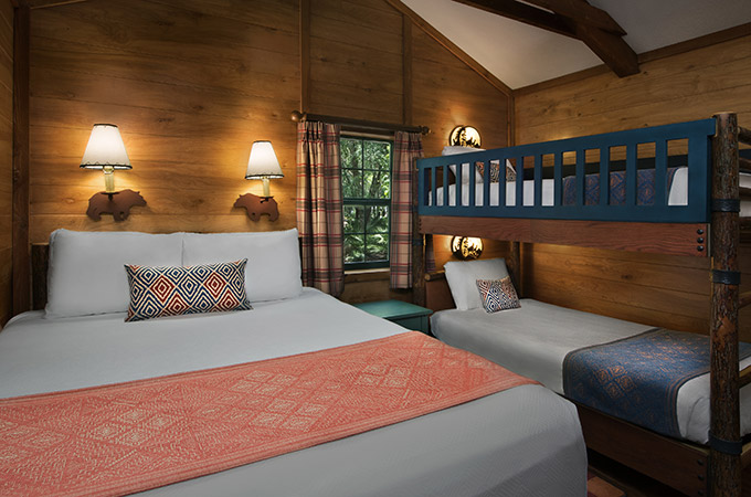 Resort Features: Disney's Fort Wilderness features plenty of recreation activities, including horseback riding, carriage rides, archery, Bay Lake recreation (boat/canoe rental, fishing), bike rentals, two pools, plus Chip & Dale's Campfire Sing-Along and Movies Under the Stars. There are two restaurants, plus the Hoop-Dee-Doo dinner show and seasonal Mickey's Backyard Barbeque.   Standard room amenities: Alarm clock, AC/heat, patio, charcoal grill, coffee maker & setup, DVD player, one-car driveway, hair dryer, in-room safe, iron and ironing board, crib: pack 'n play, telephone with no surcharge (charges for long-distance will apply), television, washer/dryer (1-3 bedrooms only), vanity area, voice mail, Wi-Fi wireless internet