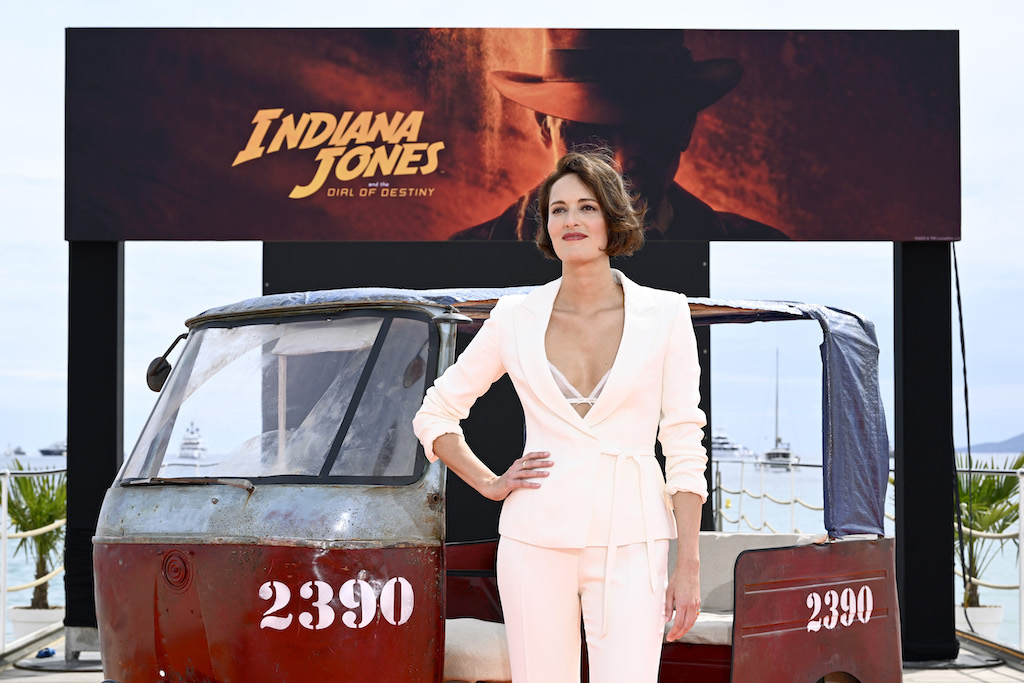 CANNES, FRANCE - MAY 18: (L-R) James Mangold, Harrison Ford, and Phoebe Waller-Bridge attend "Indiana Jones and The Dial Of Destiny" photocall at Carlton Pier on May 18, 2023 in Cannes, France. (Photo by Gareth Cattermole/Getty Images for Disney)