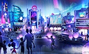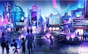In this artist rendering, a new play pavilion in development at Epcot will include first-of-their-kind experiences devoted to playful fun, inviting guests into an innovative city bursting with interactive experiences and hands-on activities. Friends and family will interact with favorite Disney characters in an energetic metropolis unlike anything ever seen before at Epcot. The as-yet-unnamed space will debut to guests in time for the Walt Disney World 50th anniversary. (Disney)