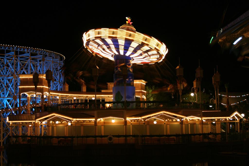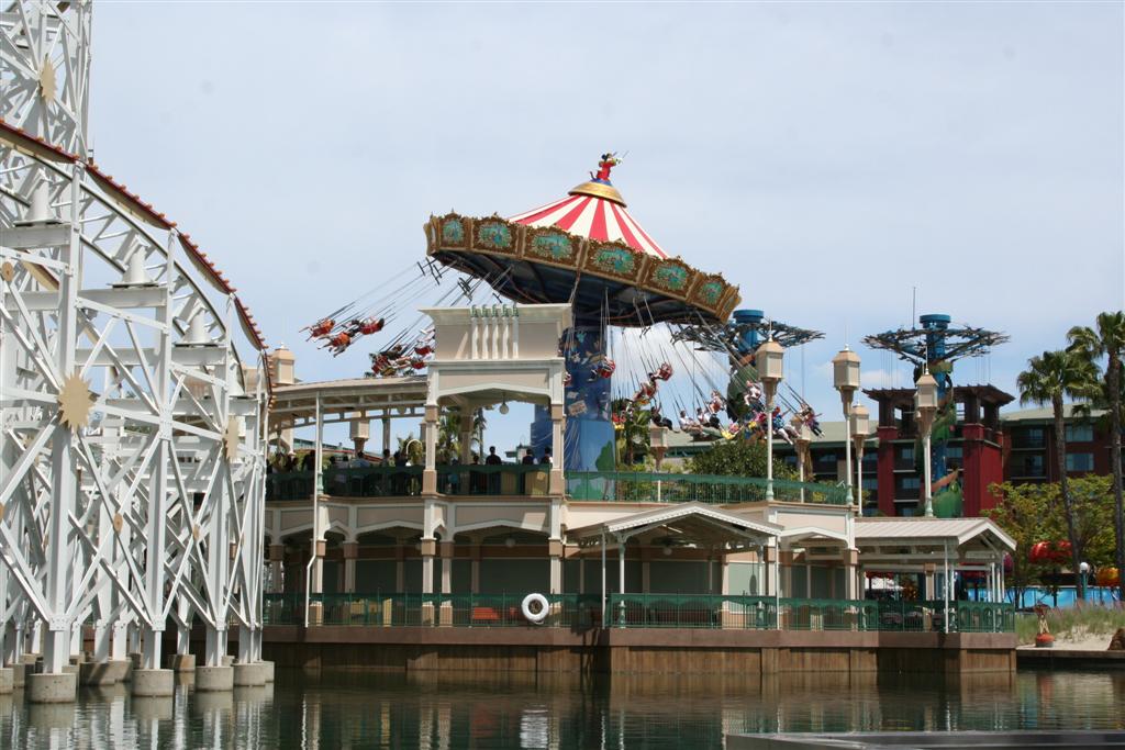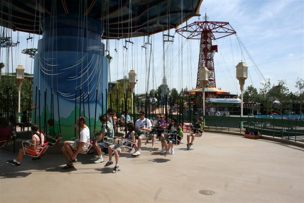 Sit down on your swing and prepare to swing around a tornado as Mickey conducts an orchestra. Swinging over part of Paradise Park, be sure to kick your feet over the water.