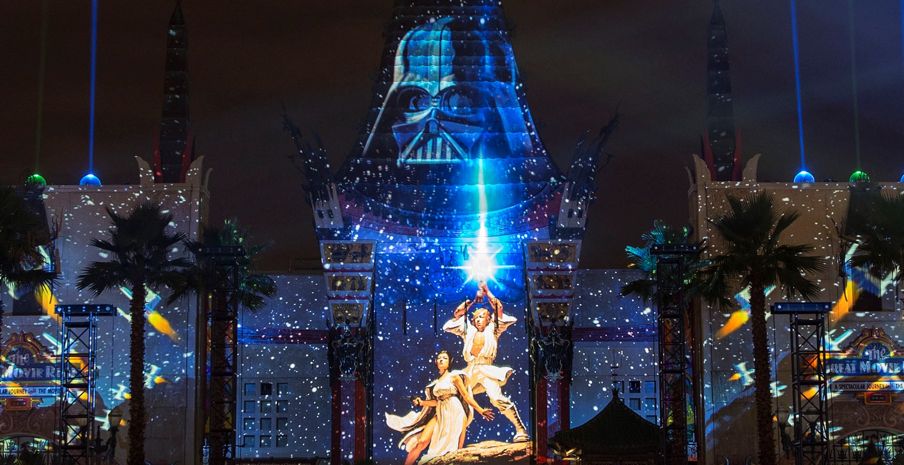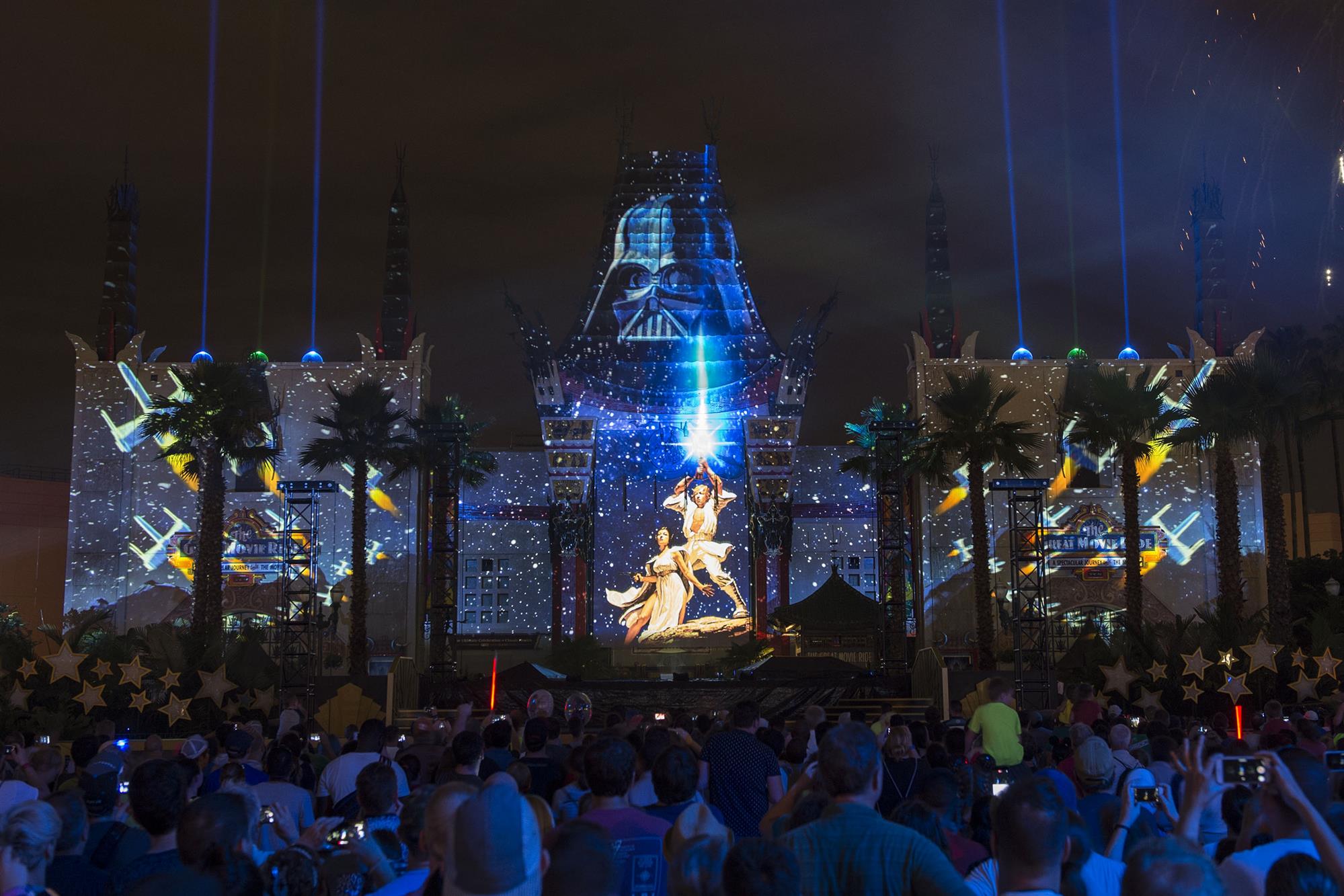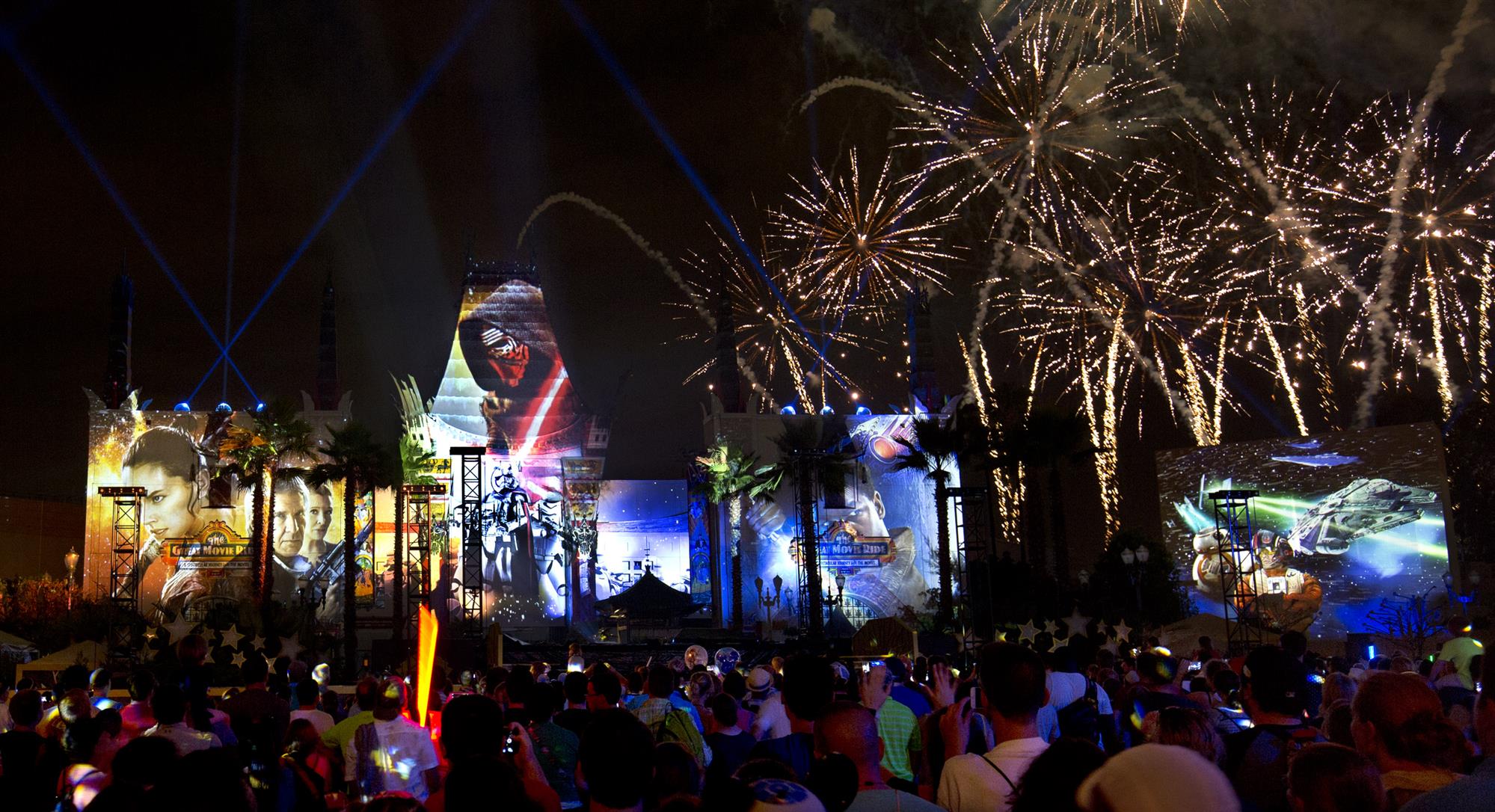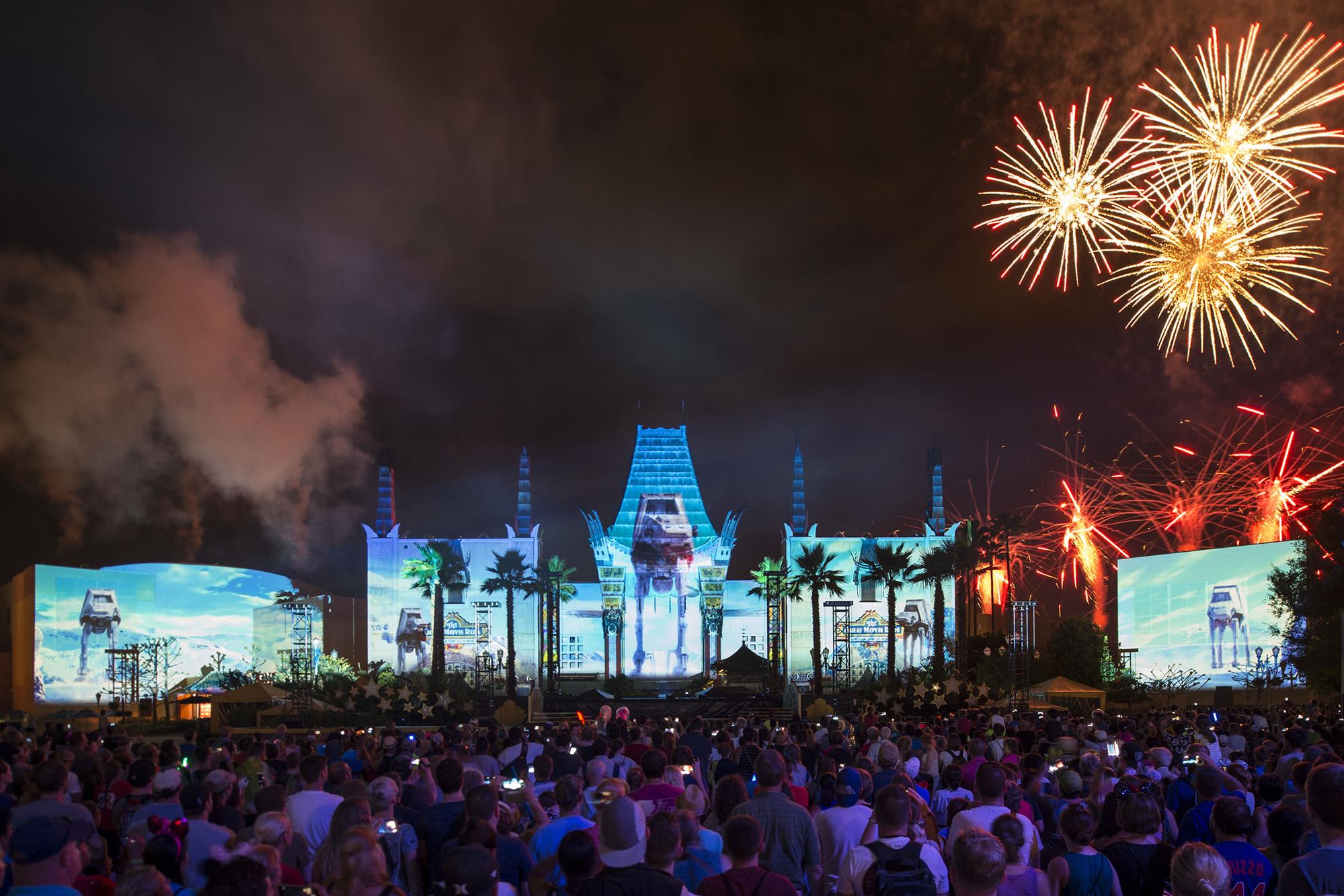 Utilizing projection mapping, this fireworks show brings together Star Wars clips from across the ages to create a true spectacular.