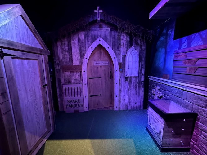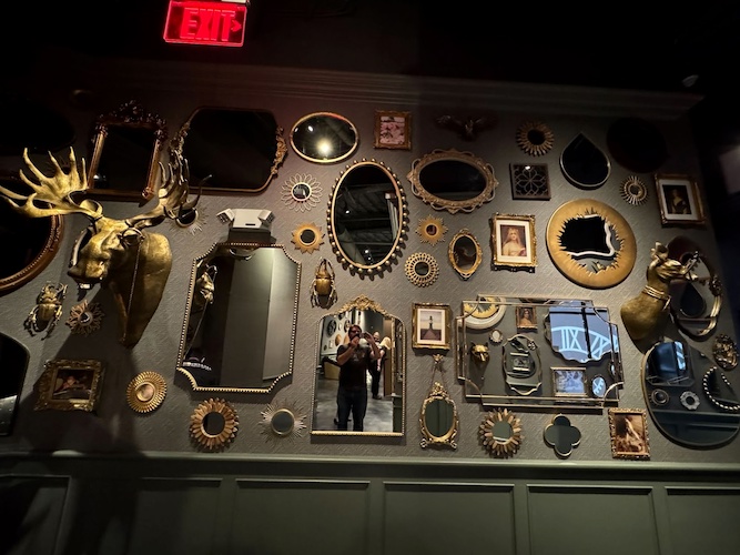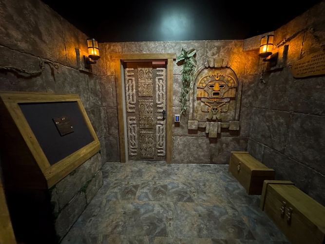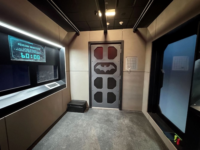 This new Escapology location is made up of eight different escape room experiences: there’s Haunted House (I was told this is already the most popular room and that popularity is likely to increase as Halloween season approaches in Southern California), A Pirate’s Curse (self-explanatory), Mansion Murder (taking a cue from murder-mystery stories like Clue and Knives Out), Lost City (with theming similar to Nickelodeon’s Legends of the Hidden Temple game show), 7 Deadly Sins (another horror-themed room), Who Stole Mona? (encouraging guests to solve an art heist with a real laser maze), and two rooms inspired by licensed properties– Batman: The Dark Knight Challenge and Scooby-Doo and the Spooky Castle Adventure.